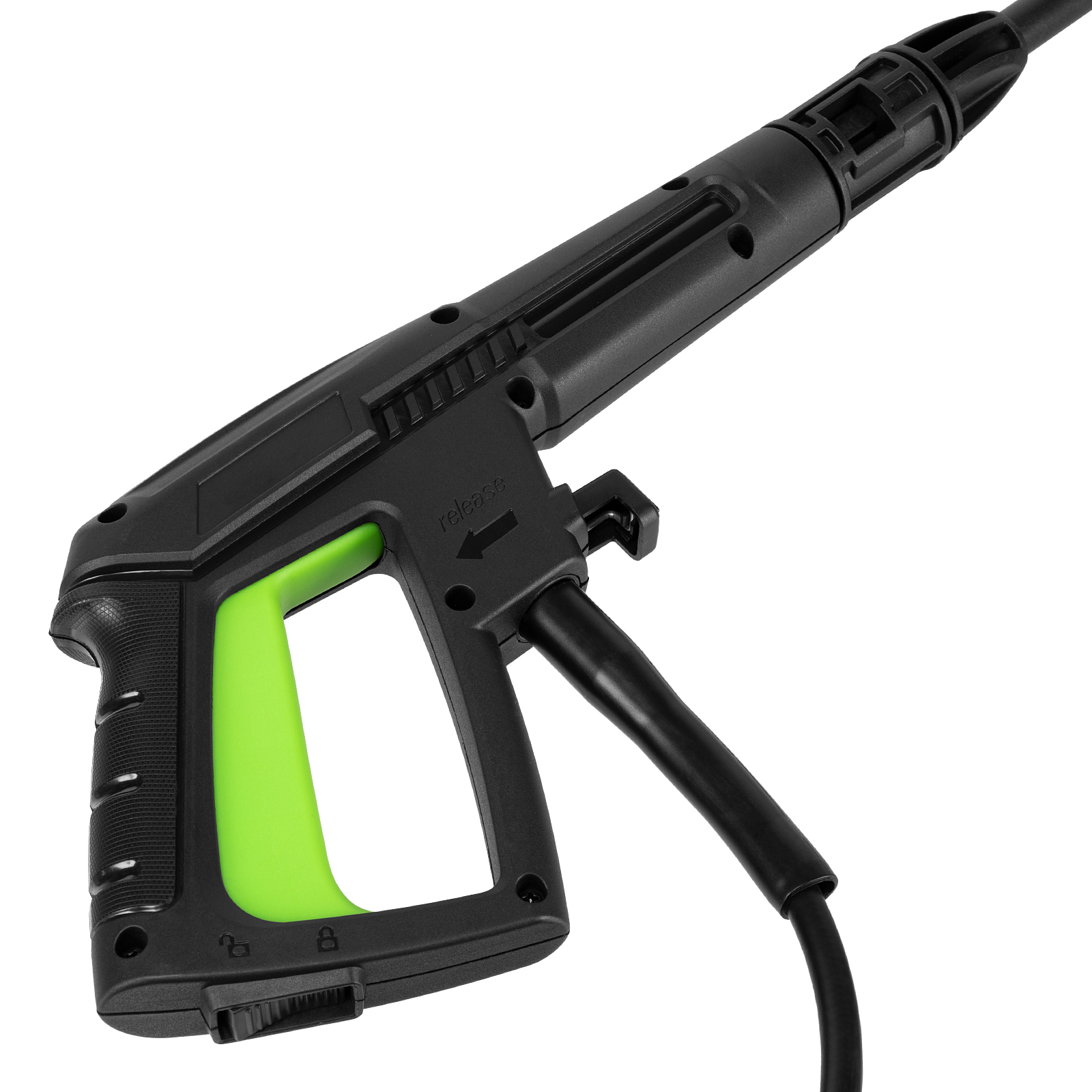 - Быстрая подготовка к работе — пистолет подключается одним движением, шланг подачи воды присоединяется при помощи быстросъемного адаптера.