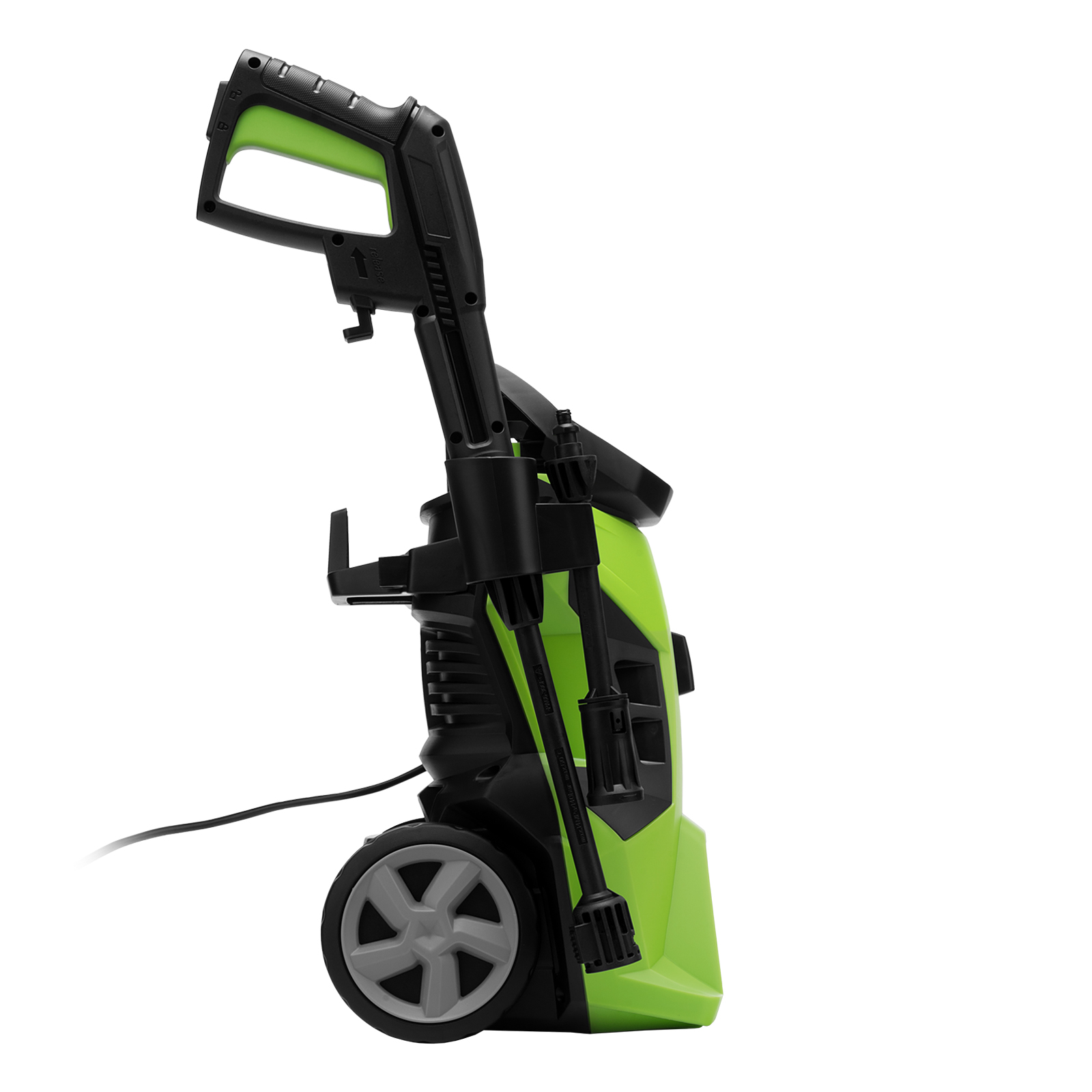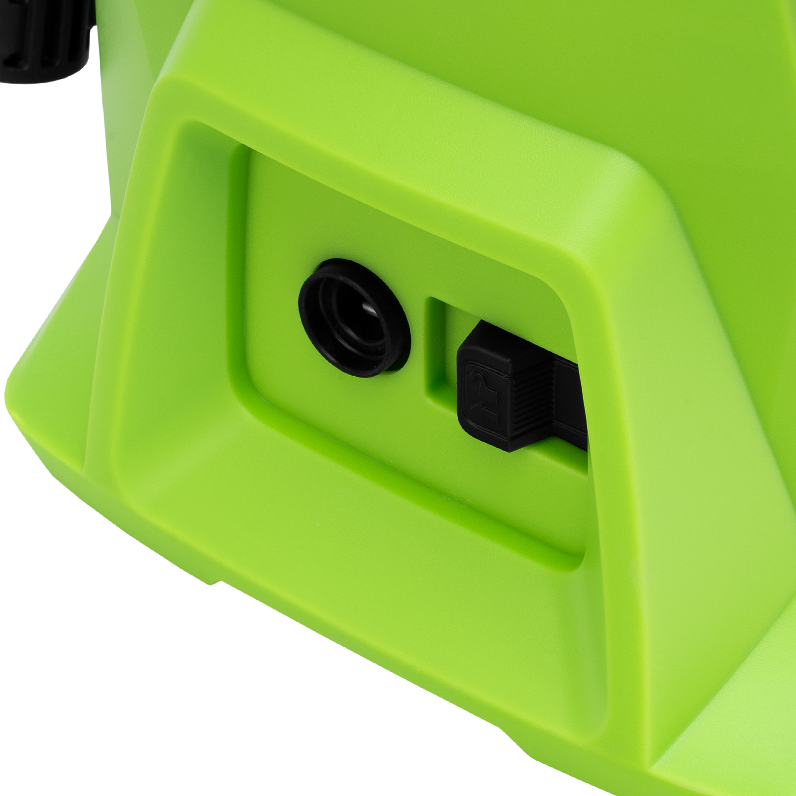 - Защита от непредвиденного пуска — главный выключатель препятствует случайному включению, рычаг пистолета блокируется в выключенном положении.