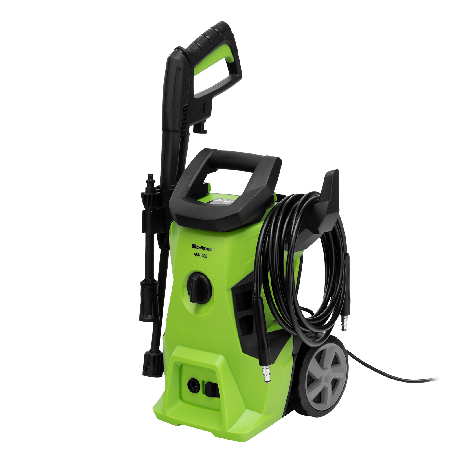 Моечная машина высокого давления АМ-1700, 1700 Вт, 130 бар, 350 л/ч, колесная Сибртех