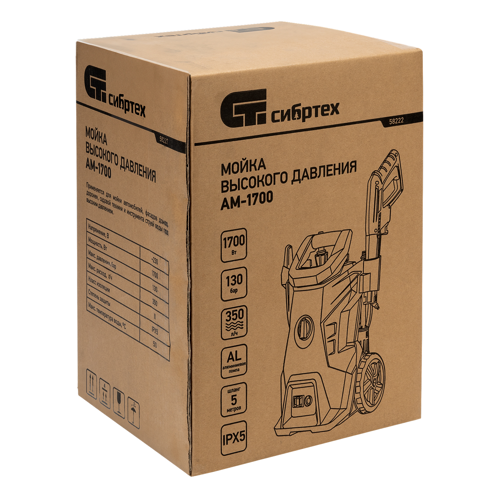 Колесная моечная машина высокого давления Сибртех АМ-1700 58222 мощностью 1700 Вт поддерживает давление 130 бар и расходует 350 л воды в час. Предназначена для бытового применения, успешно справляется как с естественными загрязнениями, так и с въевшимися пятнами или масляными разводами. Может использоваться для мытья автомобиля, очищения садовых дорожек, фасада дома, заборов, инвентаря и других предметов. Машина способна работать с режиме самовсасывания, поэтому отсутствие водопровода не помеха: источником воды может быть любой водоем или резервуар.