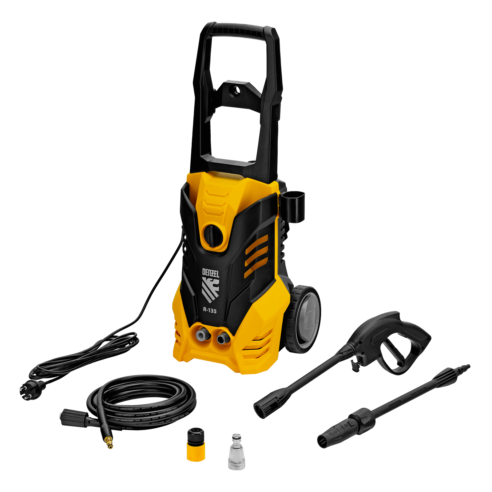 Моечная машина высокого давления R-135, 1800 Вт, 135 бар, 6 л/мин, колесная Denzel