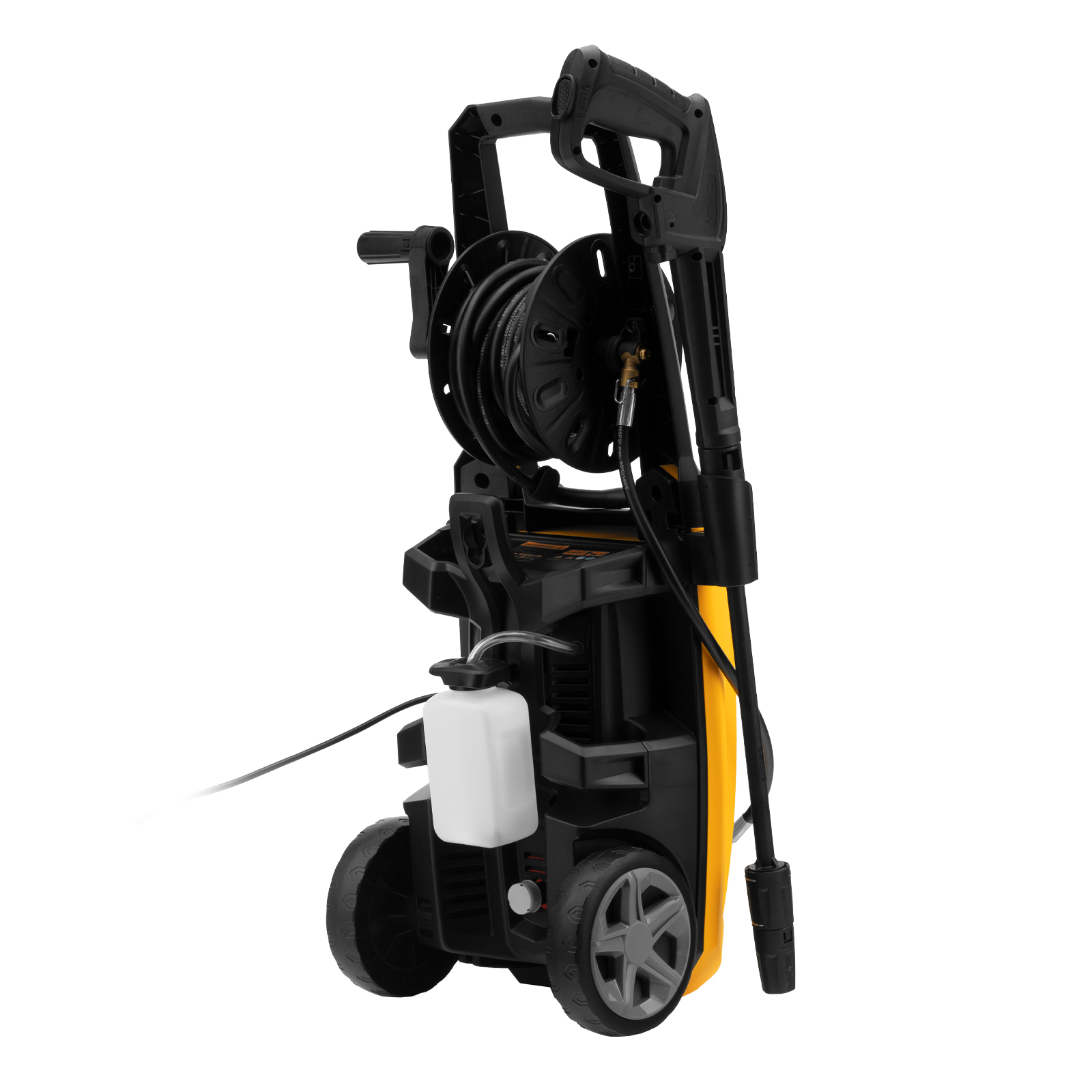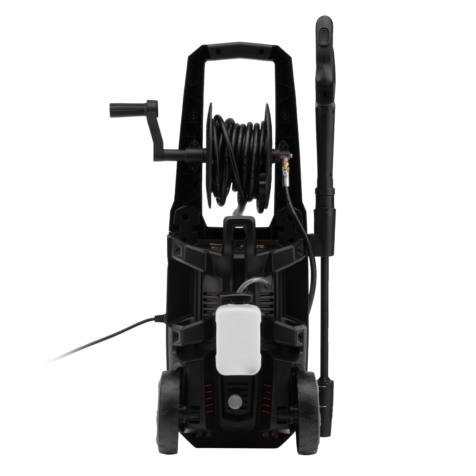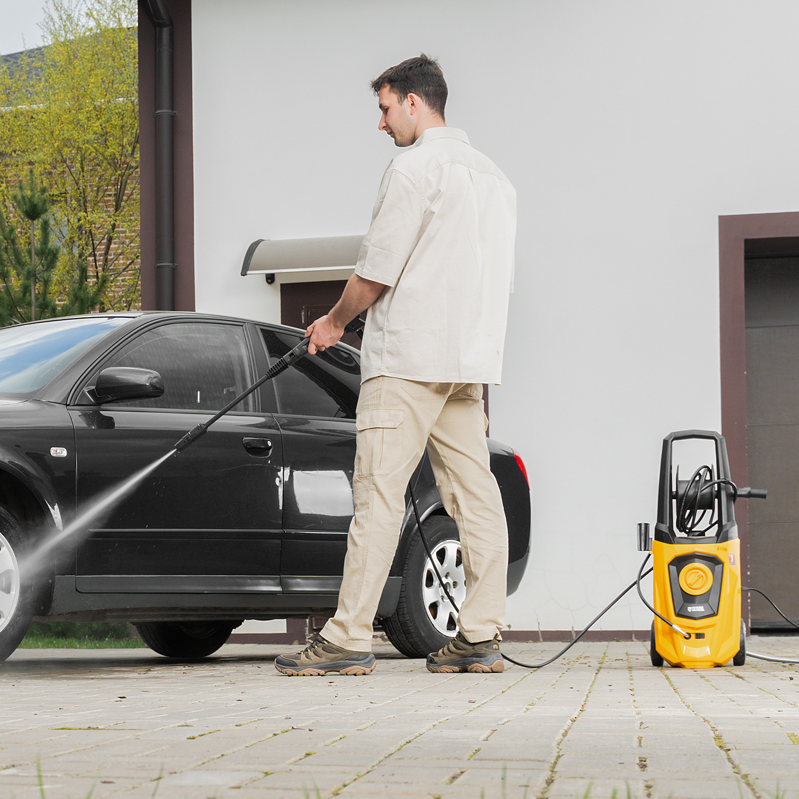 - Длина шланга и кабеля 5 м — не нужно часто перемещать машину, можно работать на удалении от розетки.