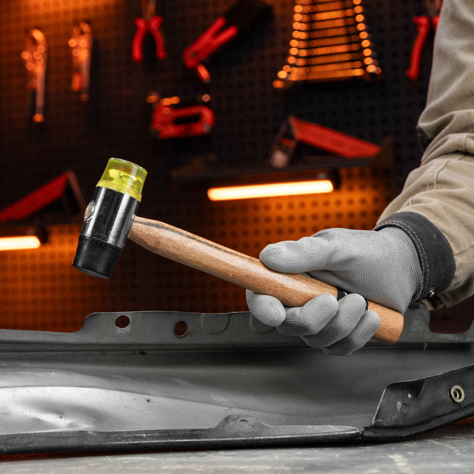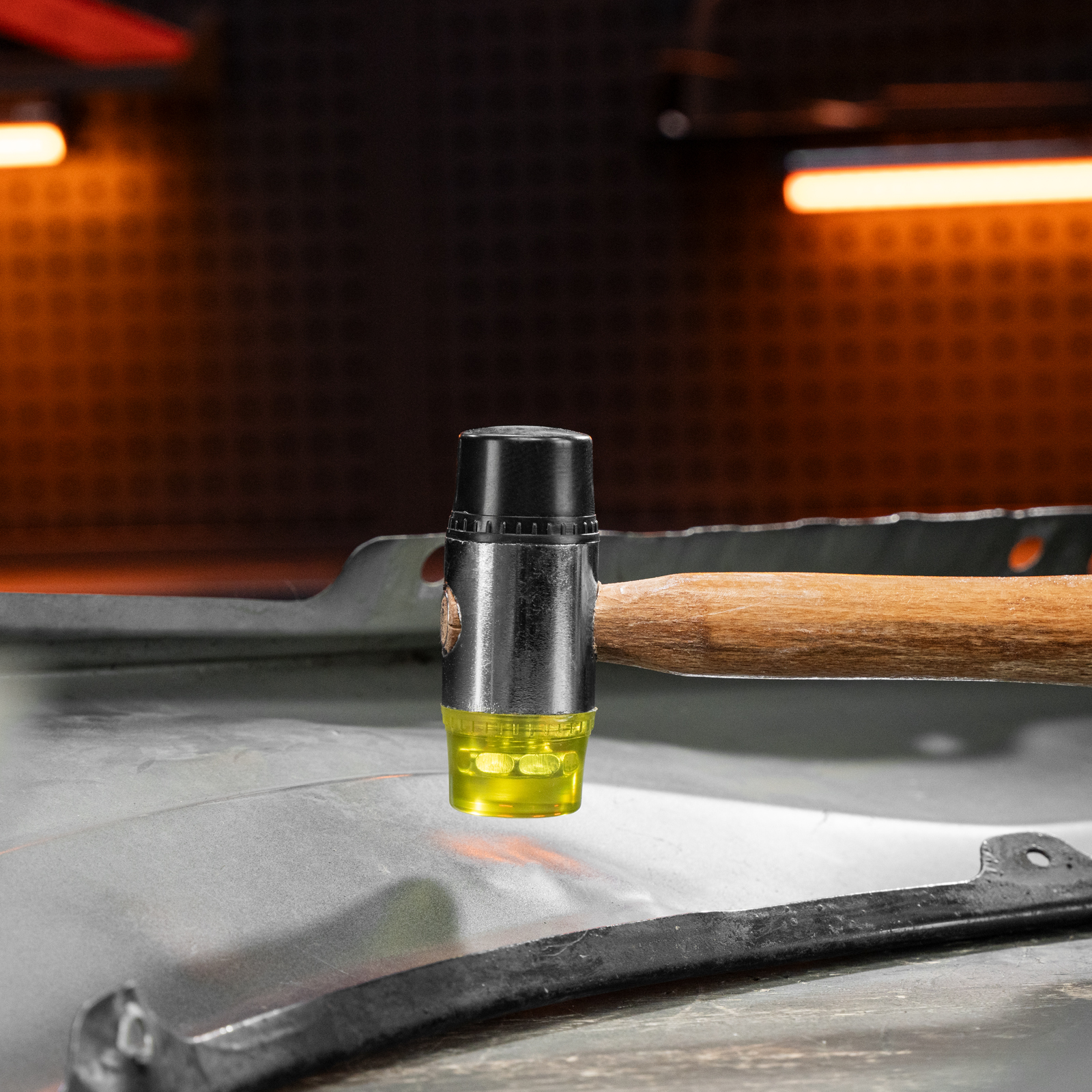 Рихтовочный молоток Sparta 108305 с бойками диаметром 35 мм, комбинированной головкой и деревянной ручкой, предназначен для выпрямления деформированного листового металла или более мягких материалов. Не повреждает поверхность при ударах. Будет полезен в слесарной мастерской, в гараже, а также дома или на даче.