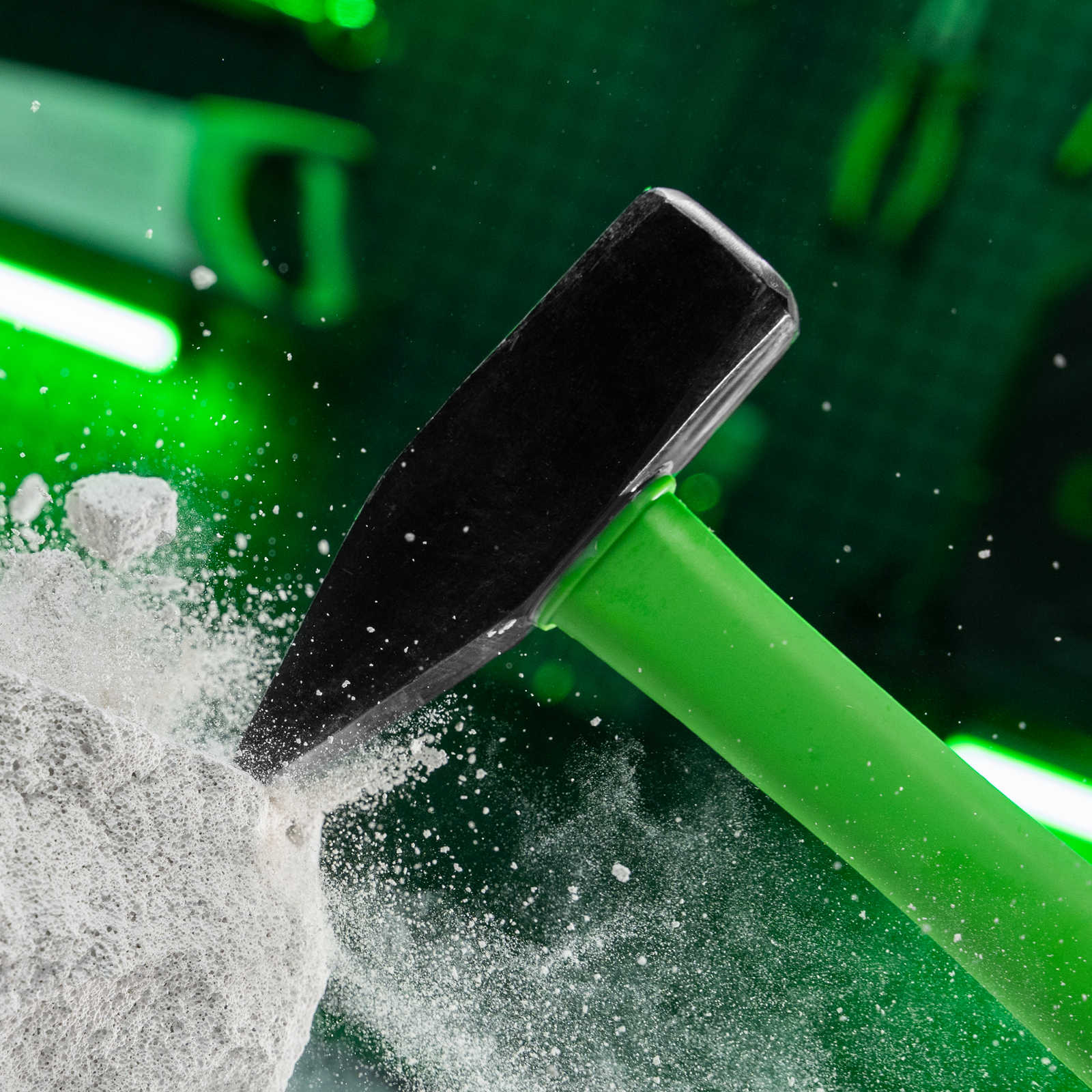 - Комфортная работа — легкая фибергласовая рукоятка поглощает колебания от ударов, ее прорезиненная поверхность не скользит в руке.