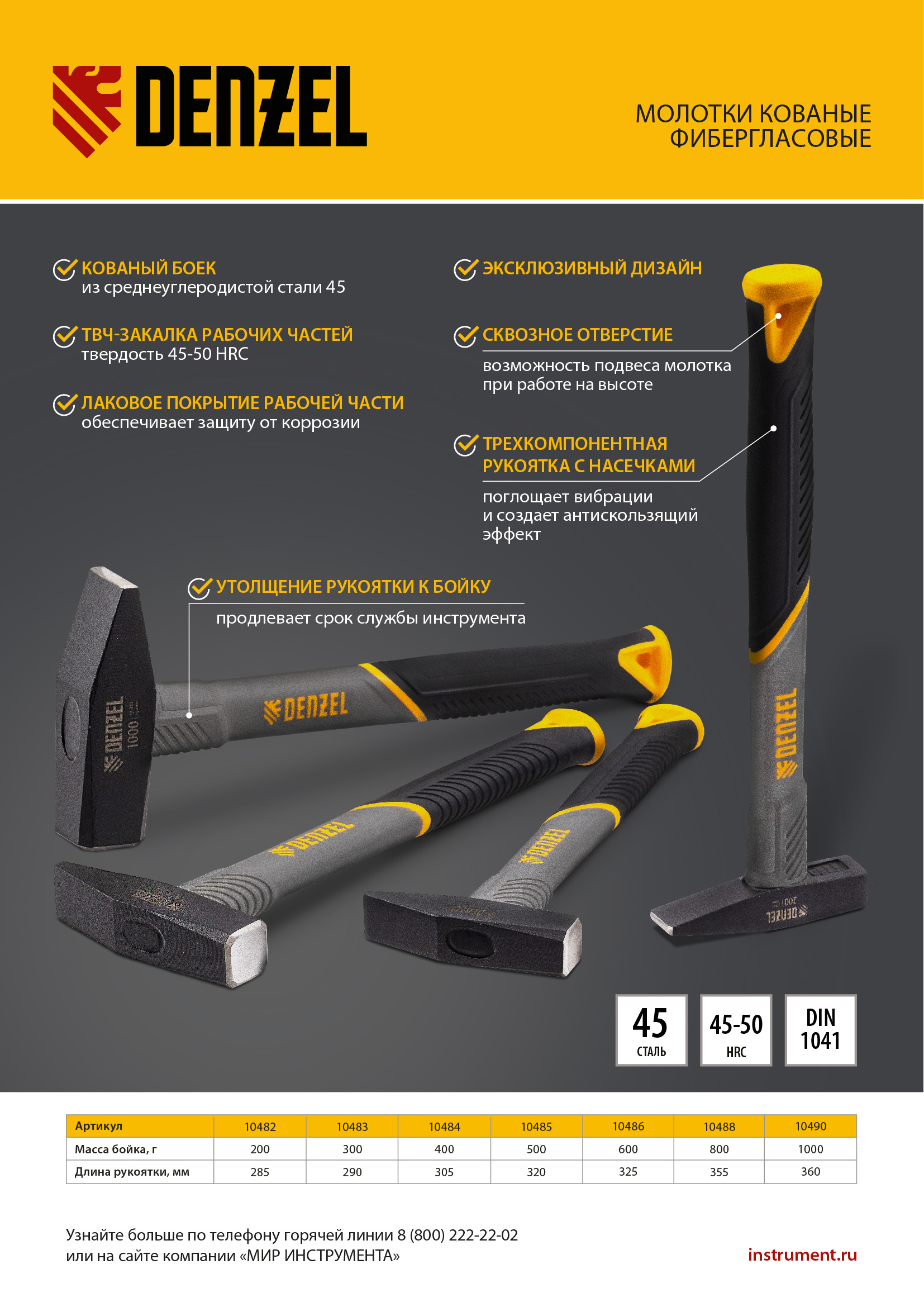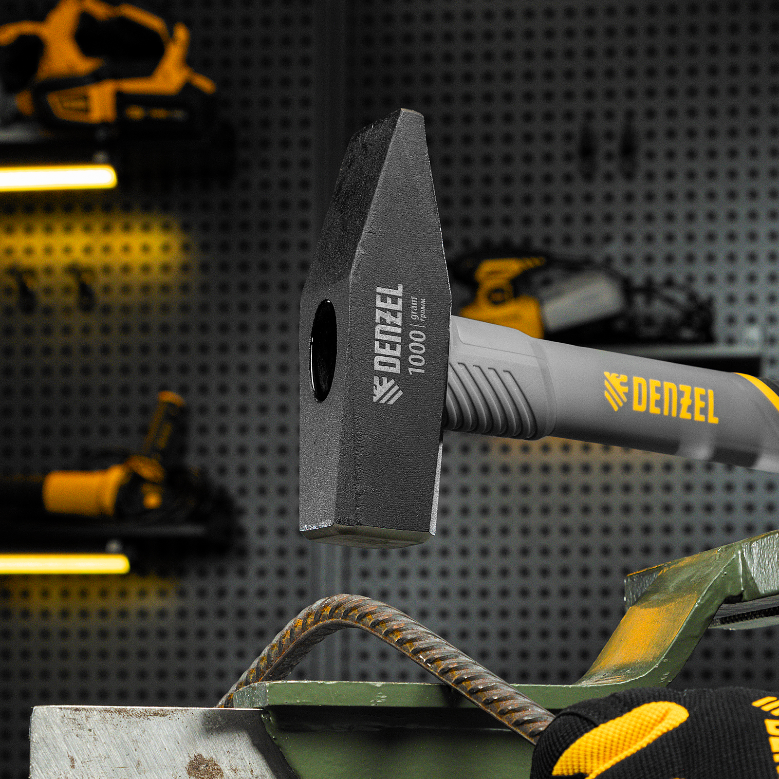 Молоток слесарный, 1000 г, кованый, фибергласовая рукоятка c TPR покрытием Denzel в Екатеринбурге