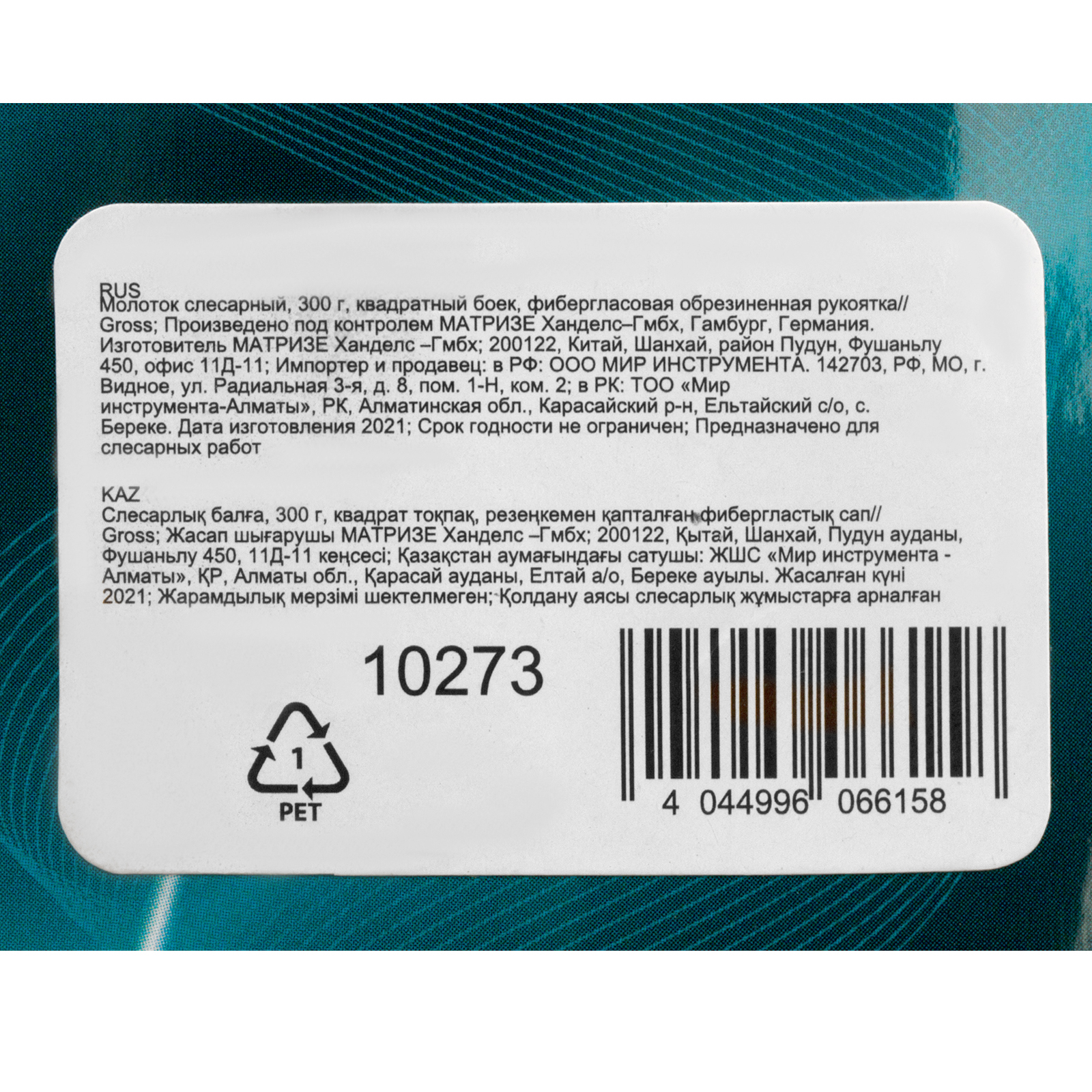 Молоток слесарный, 300 г, квадратный боек, фибергласовая обрезиненная рукоятка Gross в Екатеринбурге