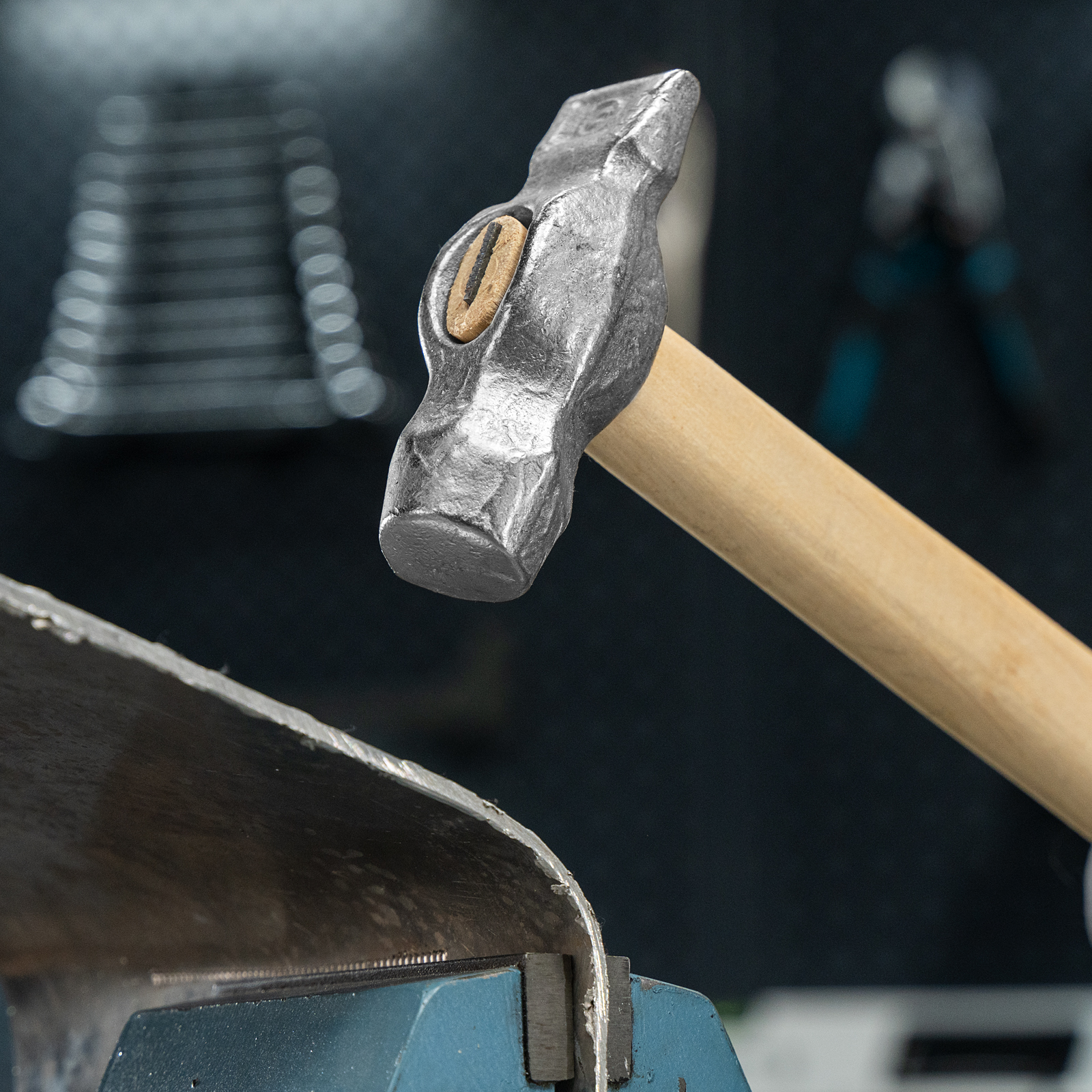 Слесарный молоток 10243 с круглым бойком весом 800 г и деревянной рукояткой предназначен для работ по металлу, а также для забивания гвоздей, дюбелей, штырей и других крепежных элементов. Утонченный с одной стороны боек позволяет наносить удары в узких местах. Инструмент может использоваться на строительной площадке, во время ремонта дома или на даче, пригодится также и в гараже.