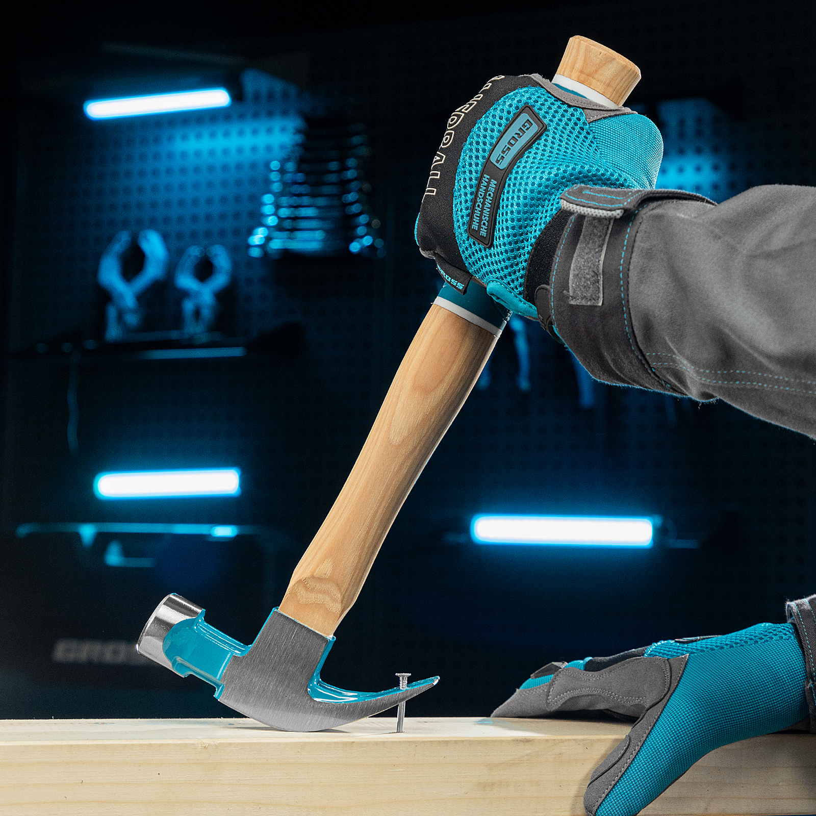 Молоток-гвоздодер Gross American Hickory 10415 длиной 355 мм, с рабочей головой весом 450 г, с магнитом и обрезиненной рукояткой, предназначен для забивания крепежных элементов и извлечения неудачно вбитых гвоздей. Носок, загнутый под углом 45°, позволяет легко вытянуть гвоздь. Благодаря двум прорезям — мини и стандартной — молоток подходит для работы с крепежом разного размера. Края гвоздодера можно затачивать для лучшего захвата шляпки гвоздя. Инструмент будет полезен во время отделочных работ, при сборке мебели, пригодится также дома, на даче или в гараже.