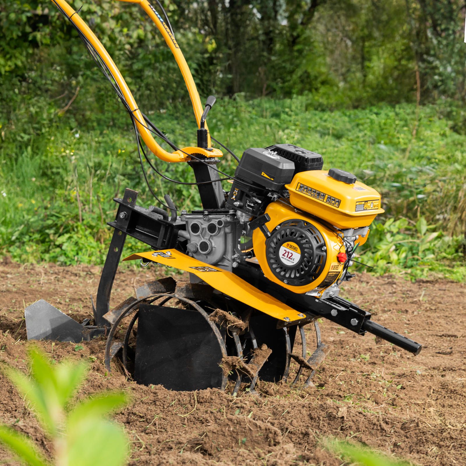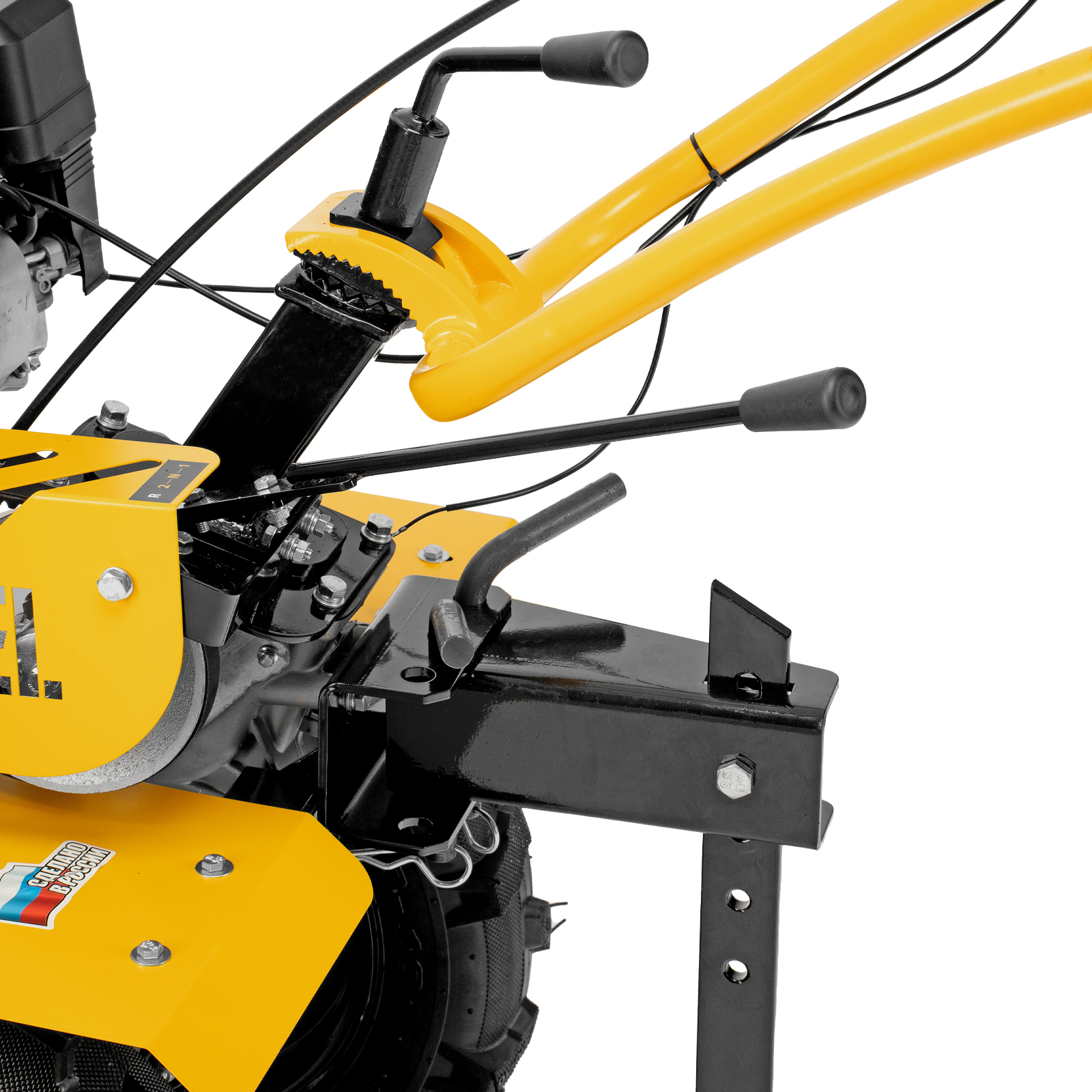 - Удобная работа — основные элементы управления расположены на рукоятках, для включения сцепления и регулировки оборотов двигателя не нужно наклоняться.
