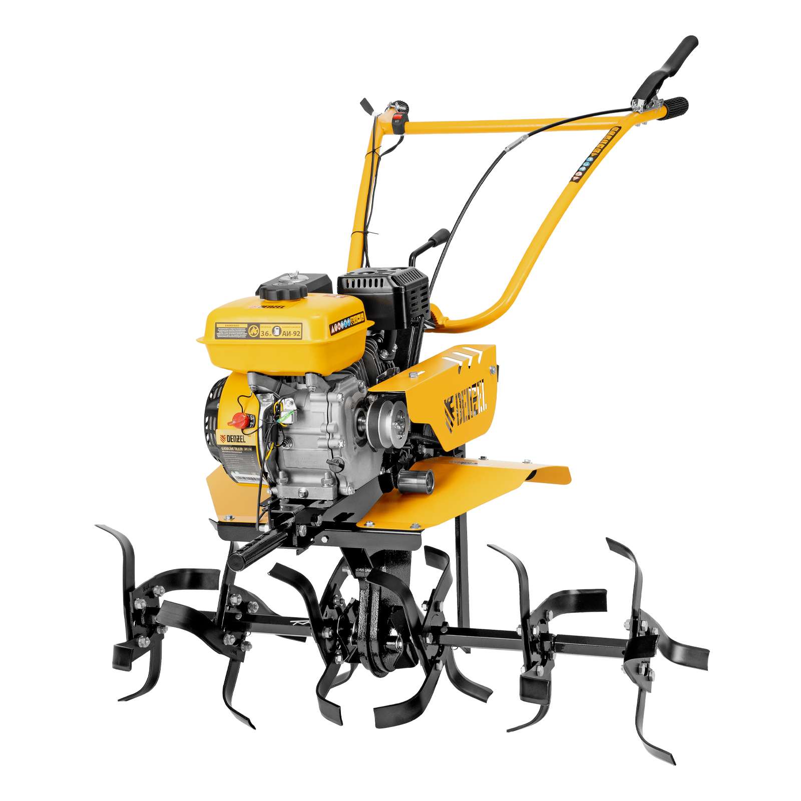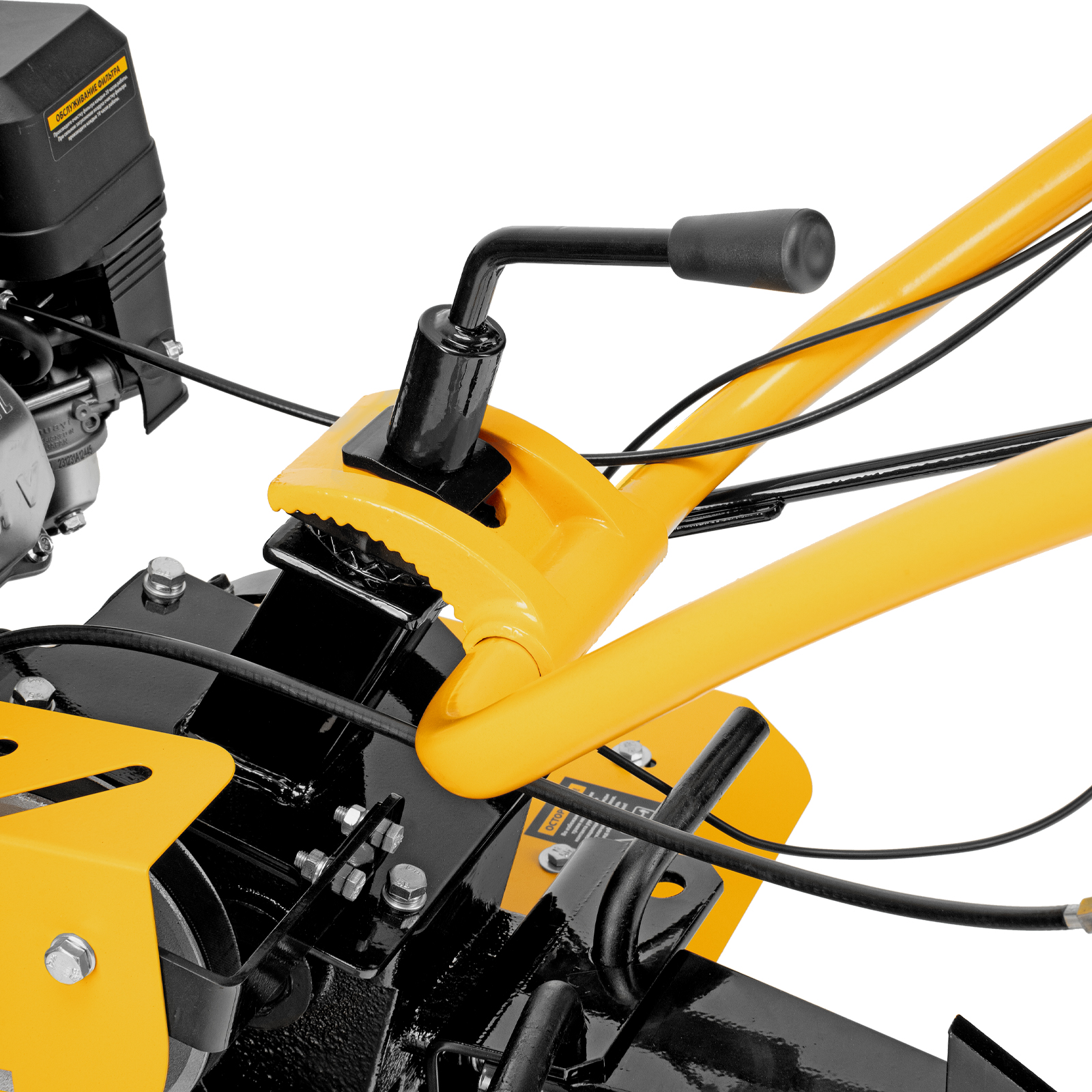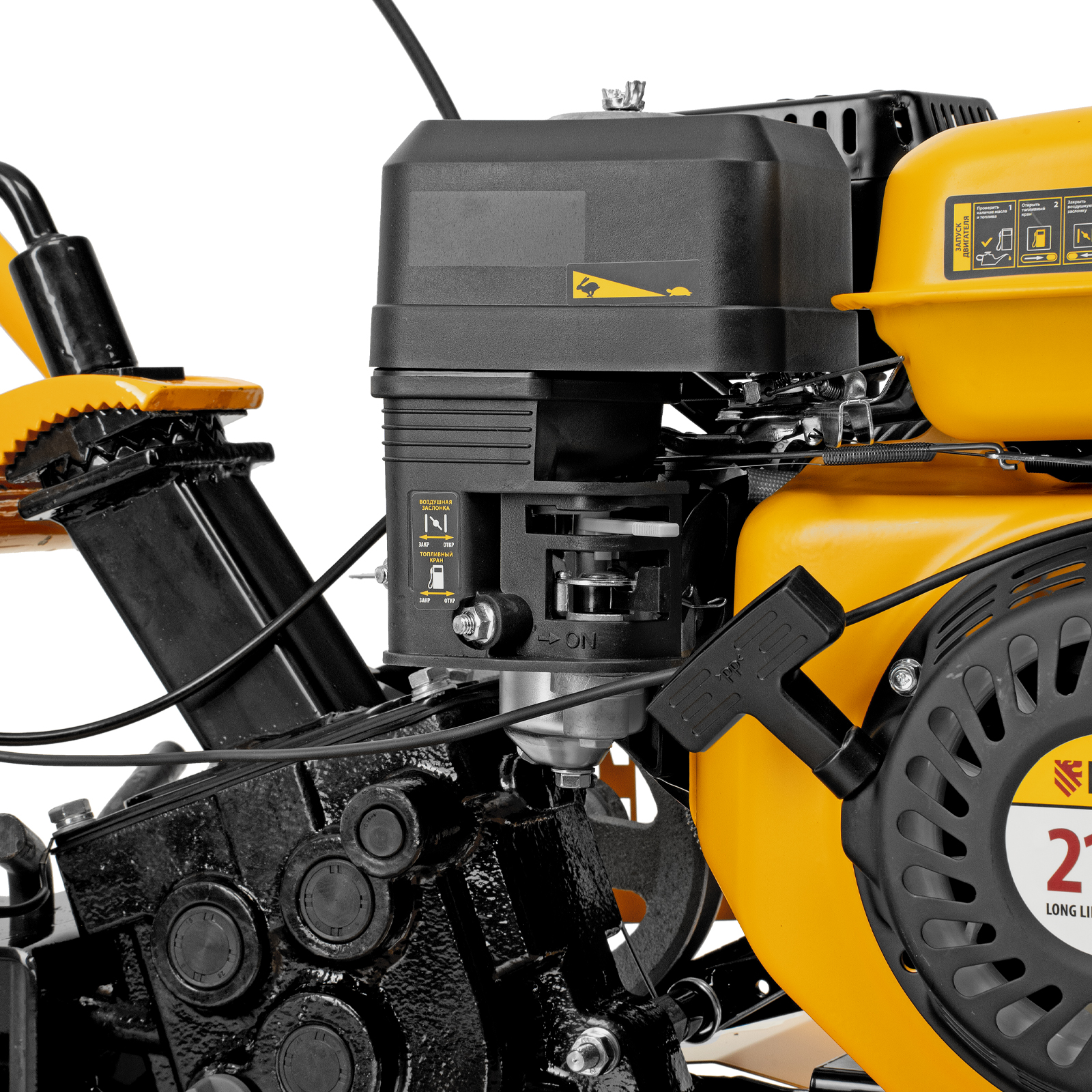- Удобная работа — основные элементы управления расположены на рукоятках, для включения сцепления и регулировки оборотов двигателя не нужно наклоняться.