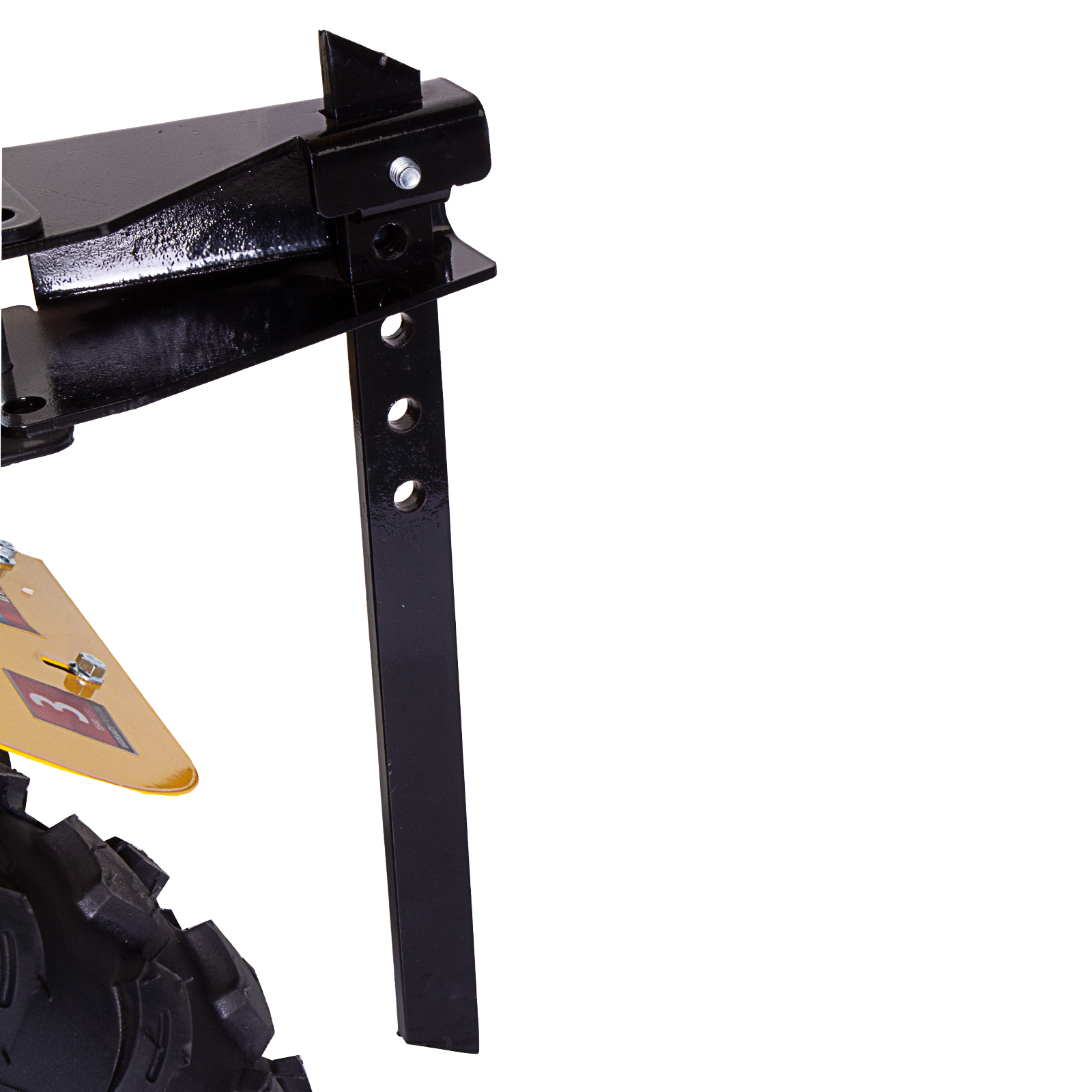 - Настройка глубины вспахивания — сошник регулируется по высоте и позволяет погружать почвофрезы на глубину до 35 см, идеально обрабатывая разные участки земли, и дополнительно обеспечивая устойчивость мотоблока.
