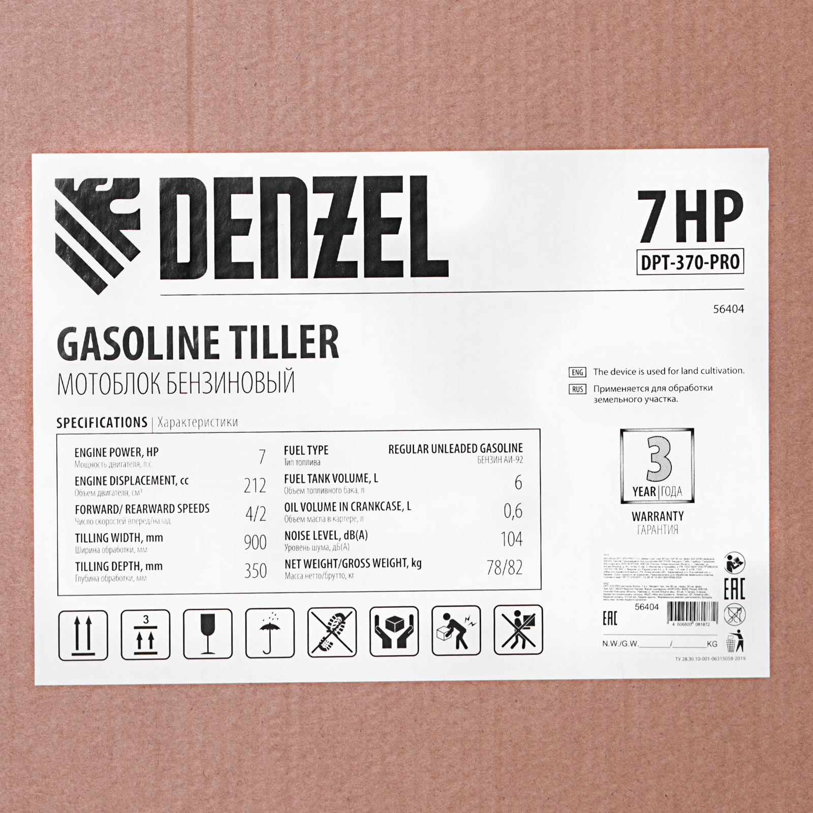 Мотоблок DPT-370-PRO, 7 л.с, ременное сцепление, ширина 90 см, глубина 35 см, фрез 3 х 4, ШОМ, передачи 4В/2Н Denzel