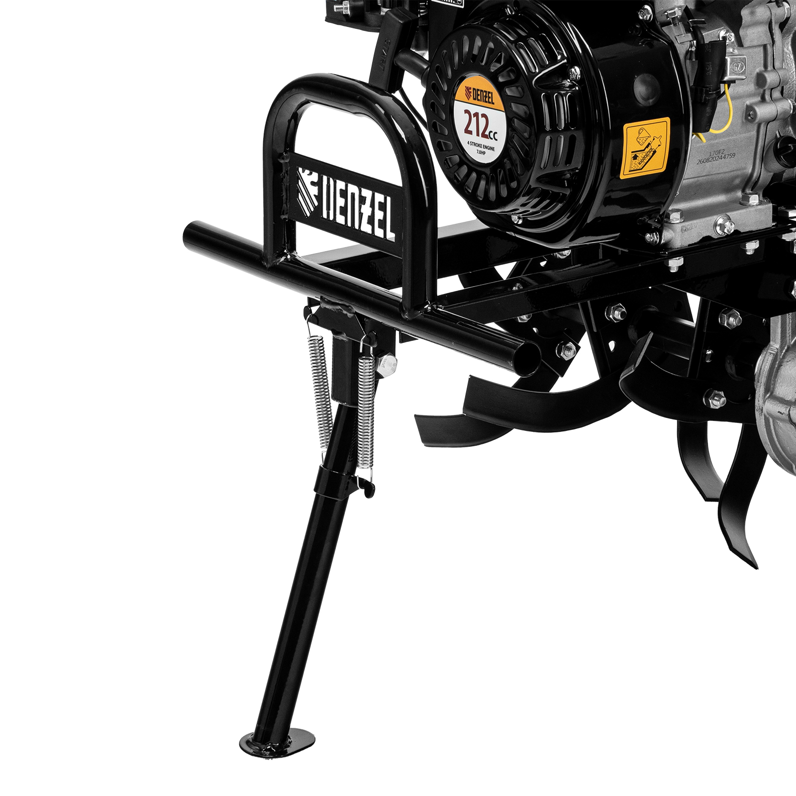 - Складная ножка — дополнительная опора позволяет удобно располагать мотоблок в зоне хранения без риска опрокидывания.