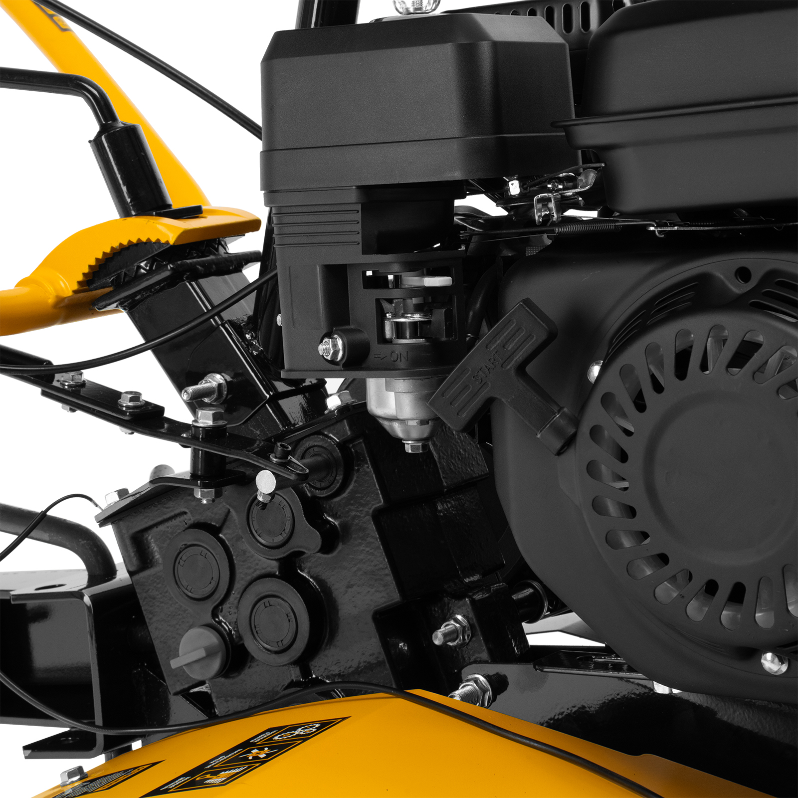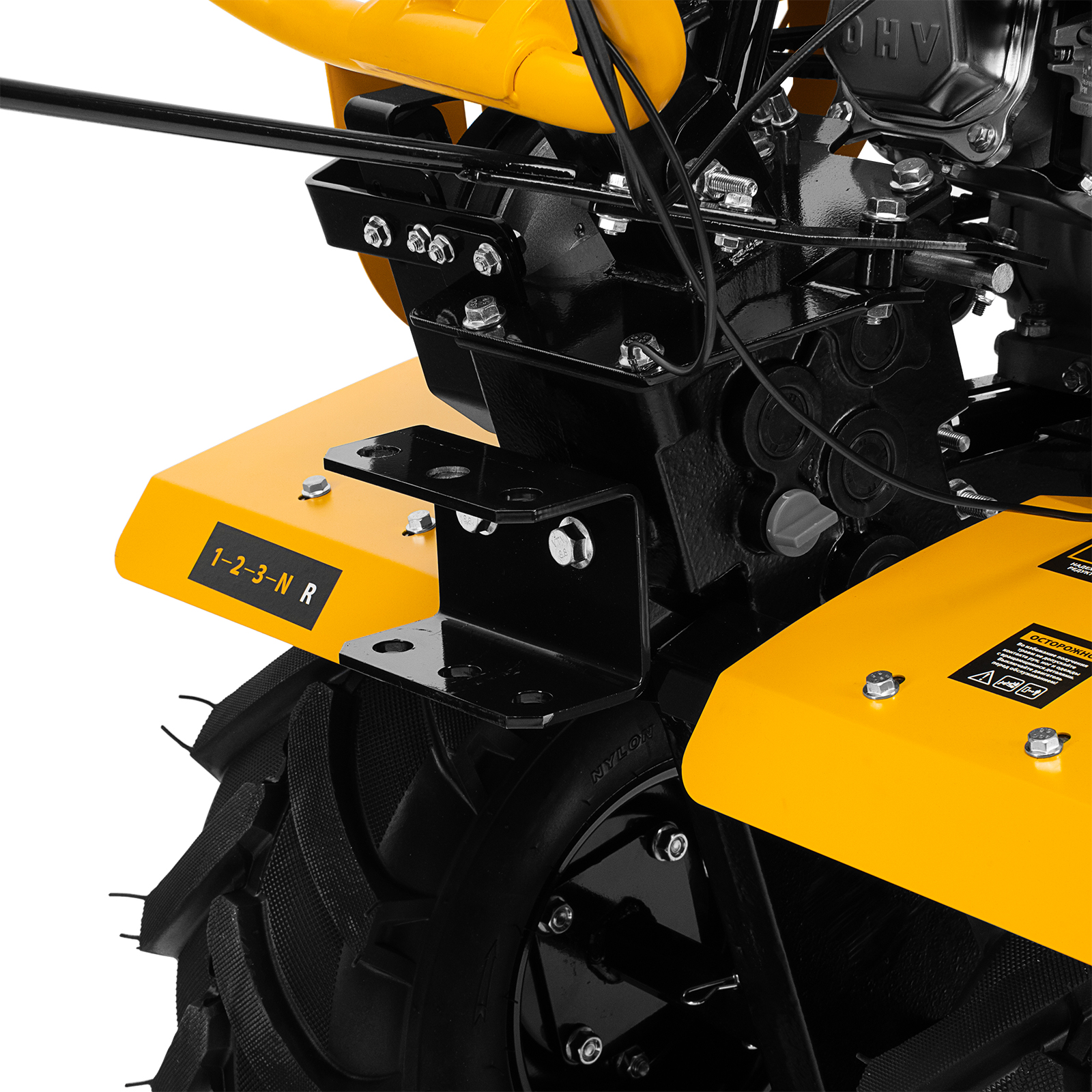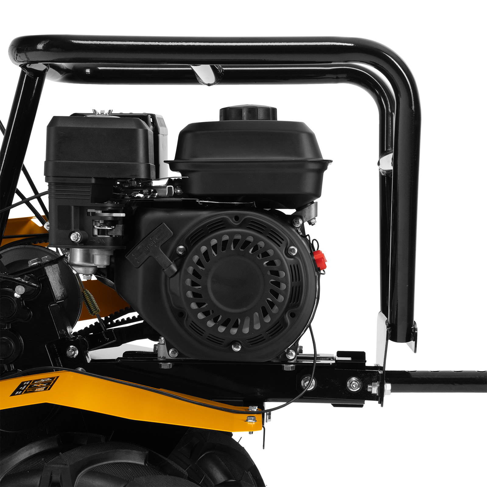 - Усиленная рама — ключевые узлы надежно защищены, мотоблок удобно транспортировать.