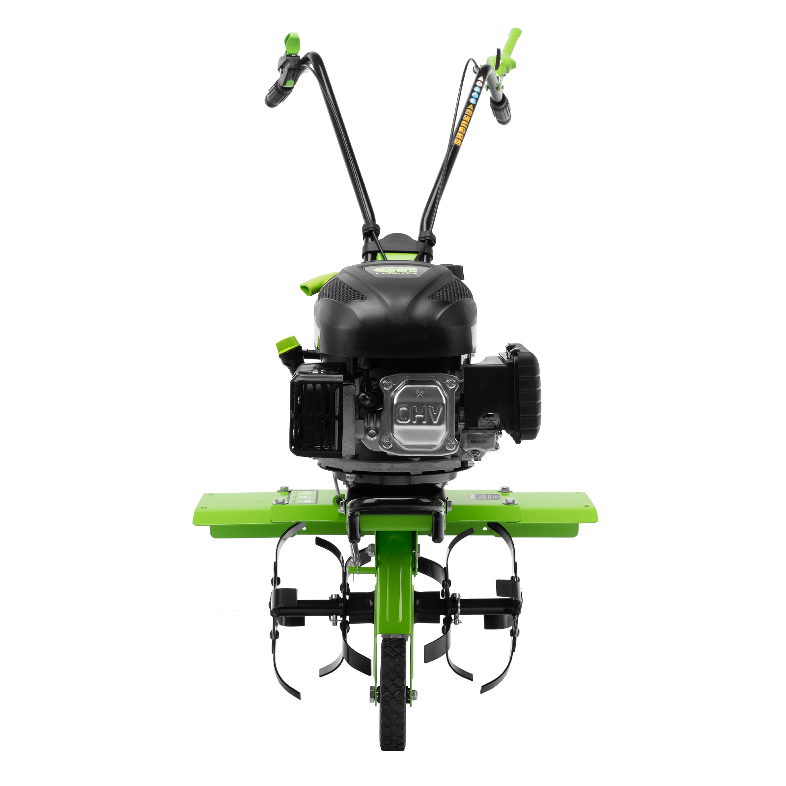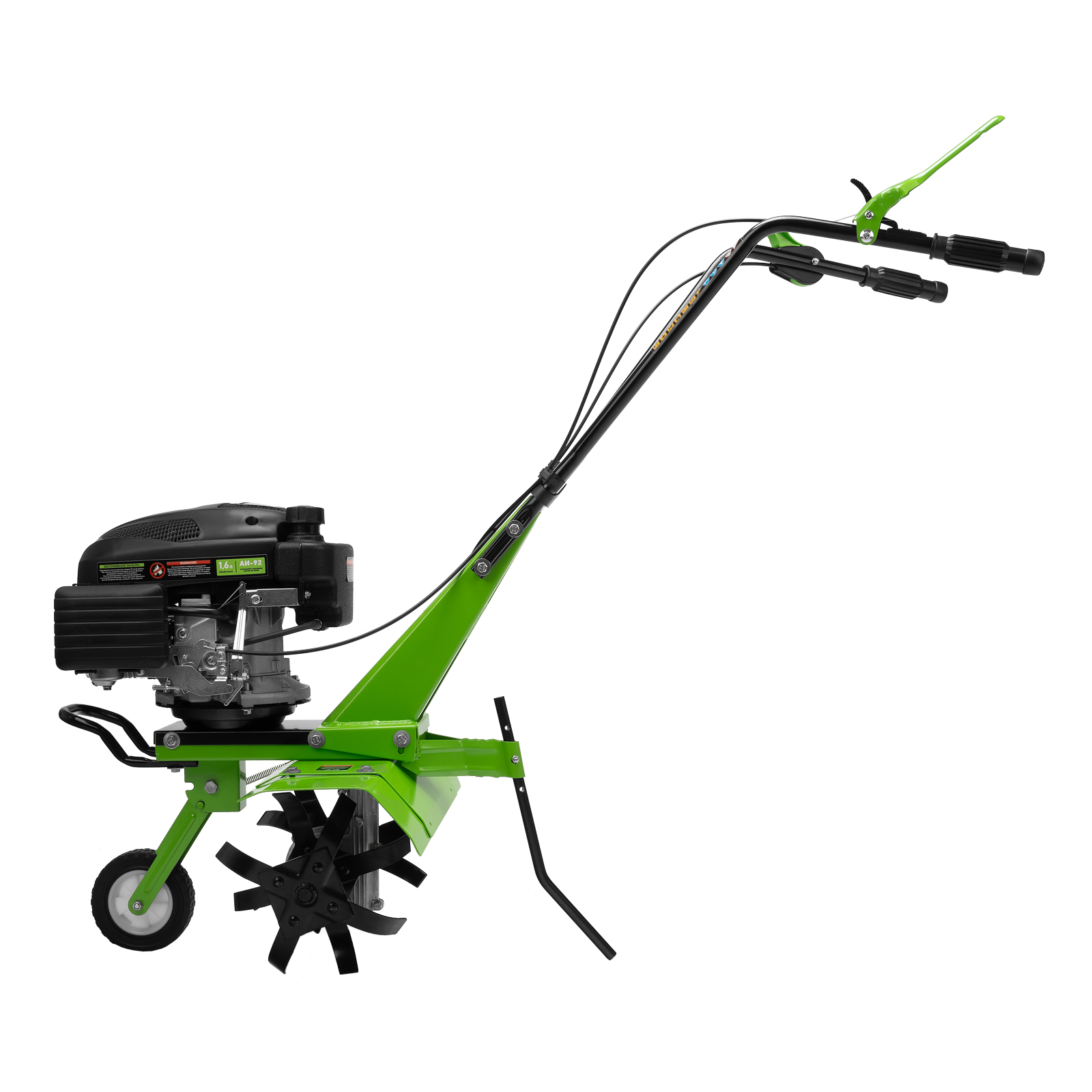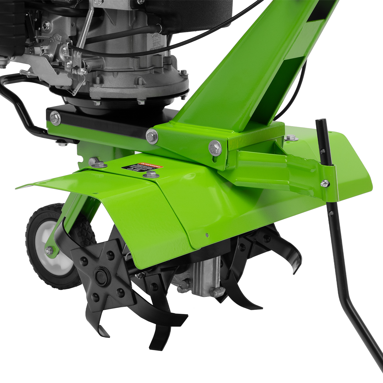 - Удобная транспортировка – 6-дюймовое колесо (15.24 см), вынесенное вперед, и рукоятка на корпусе позволяют быстро доставить культиватор в нужное место или убрать на длительное хранение.