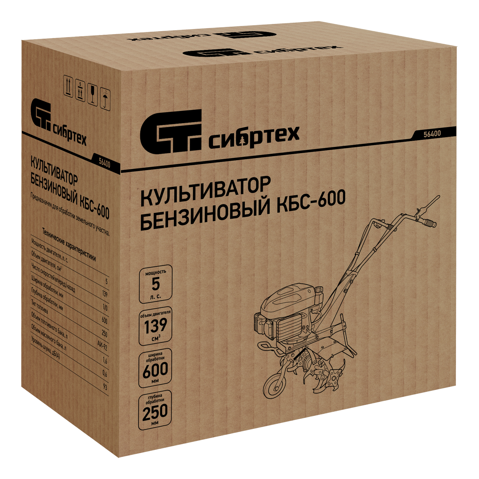 Мотокультиватор КБС-600, 5 л.с, 139 куб.см, ширина 60 см, фрез 3 x 4, передачи 1В Сибртех
