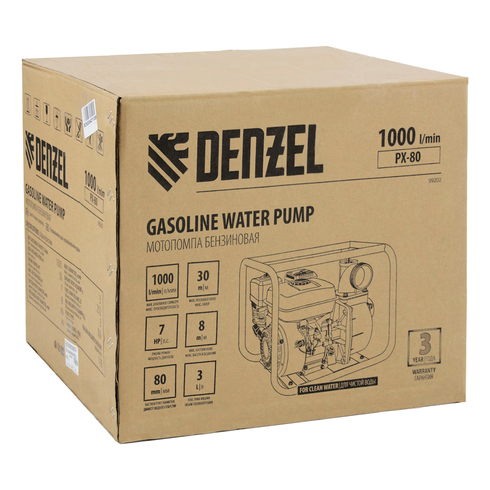 Мотопомпа бензиновая для чистой воды PX-80, 7 л.с, 3", 1000 л/мин, глубина 8 м, напор 30 м Denzel в Екатеринбурге