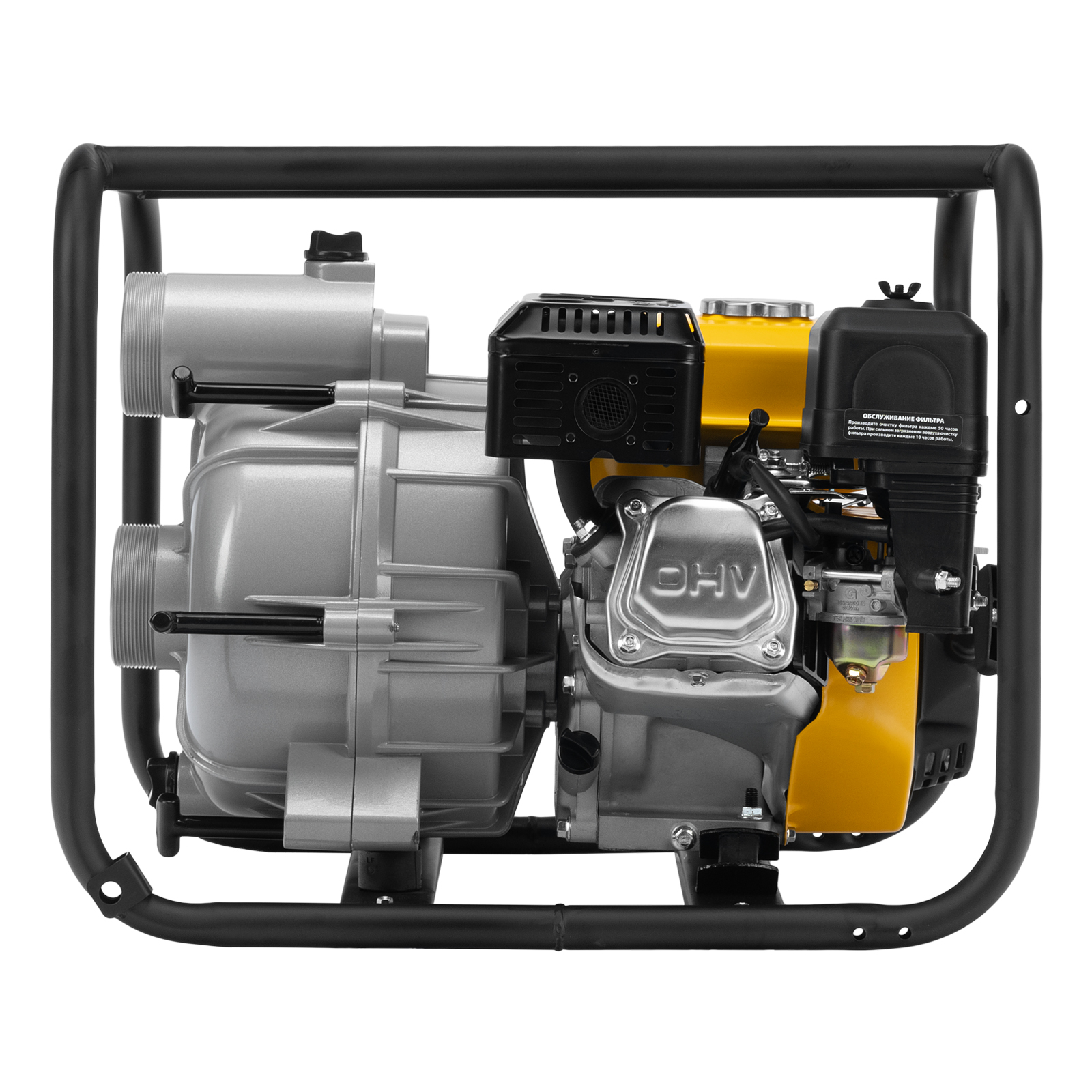 - Устойчивость — широкое основание позволяет установить мотопомпу даже на неровной поверхности.