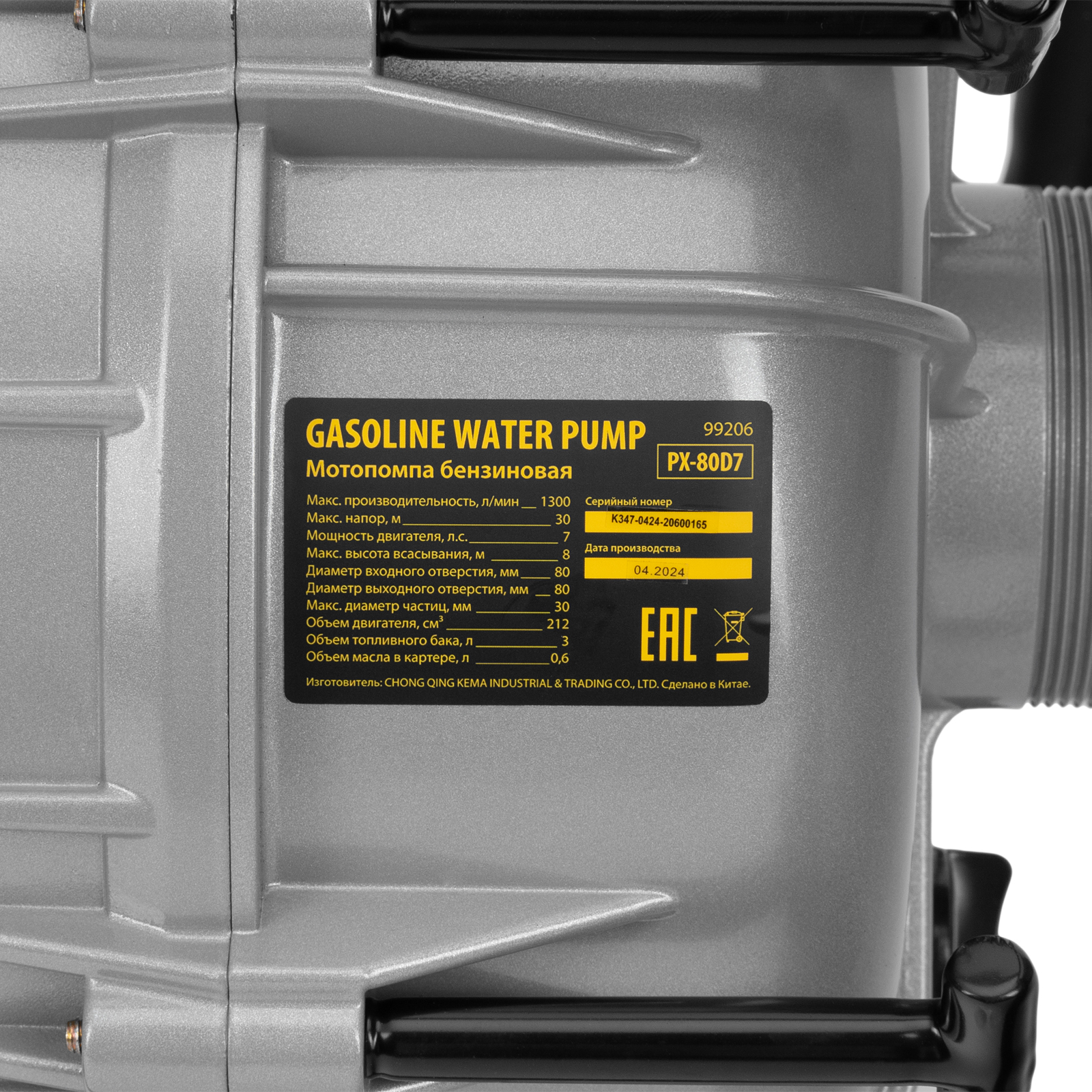Мотопомпа бензиновая для грязной воды PX-80D7, 7 л.с., 3", 1300 л/мин, глуб 8 м,напор 30 м Denzel в Екатеринбурге