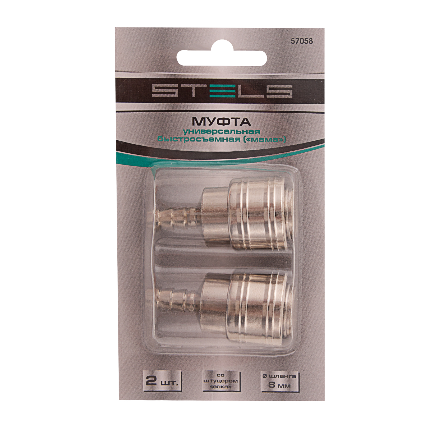 Муфта универсальная быстросъемная ("мама") 3/8, со штуцером "елка" под шланг 8 мм, 2 шт, Stels в Екатеринбурге