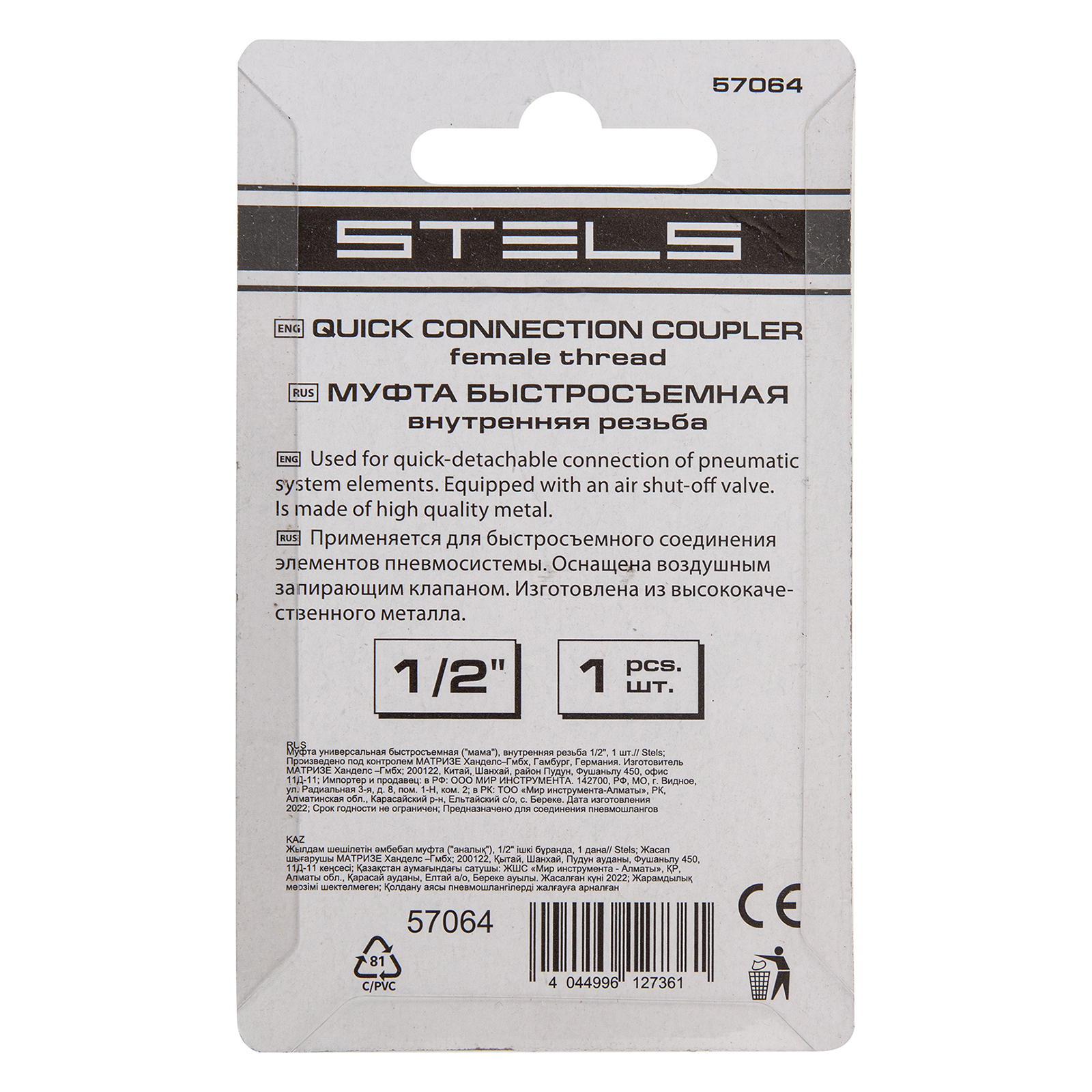 Муфта универсальная быстросъемная ("мама") внутренняя резьба 1/2, 1 шт, Stels в Екатеринбурге