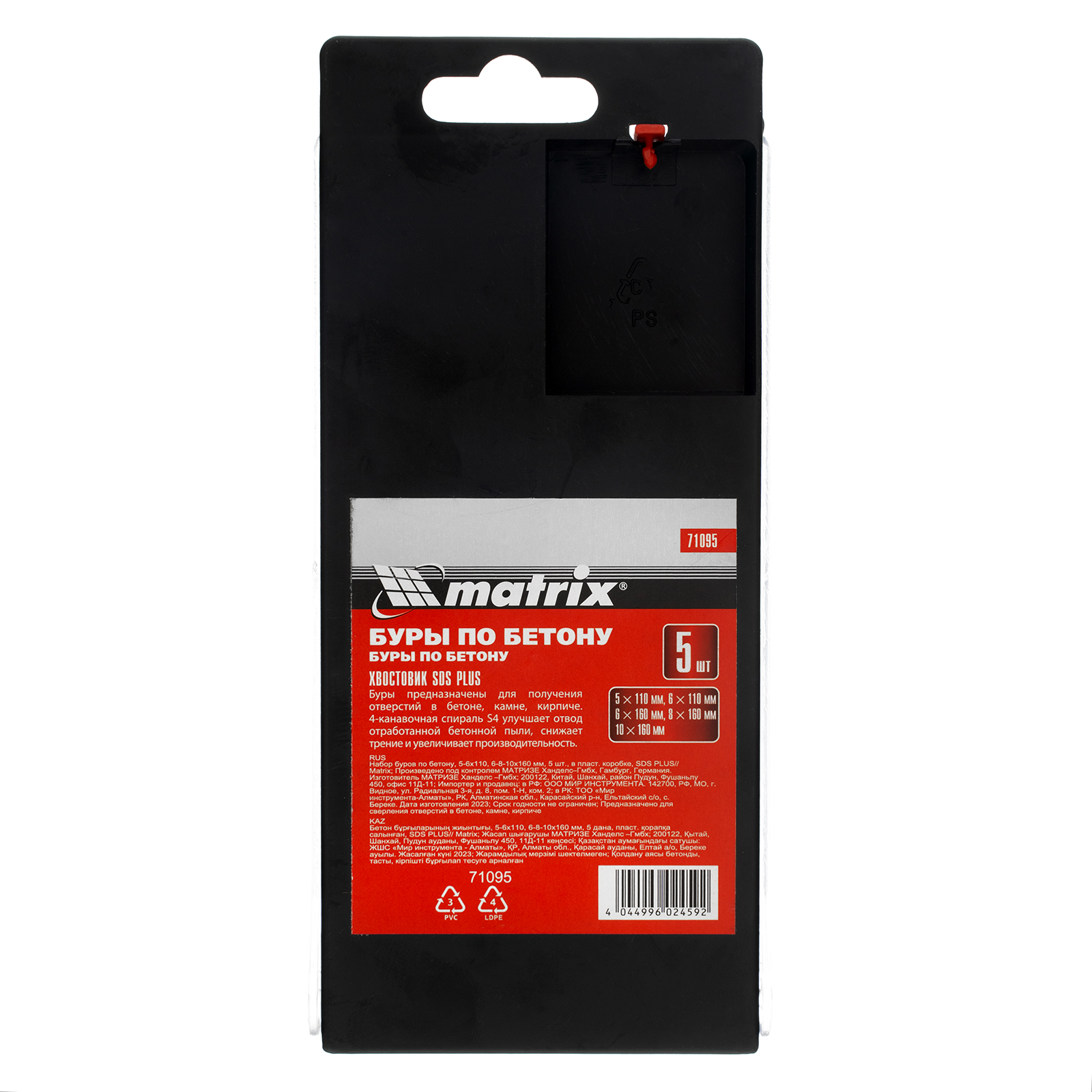 Набор буров по бетону, 5-6 х 110.6-8-10 х 160 мм, 5 шт, в пластиковой коробке, SDS Plus Matrix в Екатеринбурге