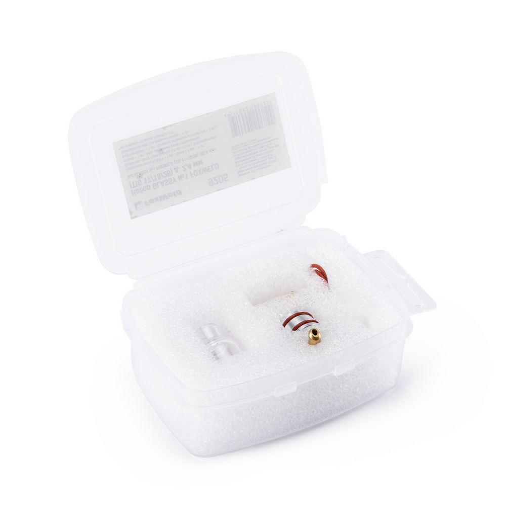 Набор с прозрачным соплом для TIG сварки FOXWELD GLASSY №1 используется с горелками TP-17, TP-18, TP-26 для сварочных работ с вольфрамовыми электродами диаметром 2,4 мм. Прозрачное сопло из термостойкого кварцевого стекла не боится ударных нагрузок, улучшает обзор в процессе сварки, защищает сварочную ванну и формирует равномерный поток защитного газа. Набор GLASSY № 1 подходит для визуального контроля сварочного процесса – для обучения, демонстрации сварки или для специалиста, который следит за качеством сварного шва.ХОРОШИЙ ОБЗОРПри использовании керамического сопла на сварочный шов можно смотреть только под определённым углом. Прозрачное сопло из термостойкого кварцевого стекла улучшает обзор в процессе сварки. Прозрачная линза из специального материала предназначена для максимального контроля и лучшей видимости.УЛУЧШЕННАЯ ГАЗОВАЯ ЗАЩИТАОчень важно защитить область шва от контакта с кислородом и качество этой защиты сильно зависит от того, как равномерно, с какой скоростью и с каким по размеру покрытием аргон подаётся в зону сварки. Газ должен поступать плавно ламинарным широким потоком, покрывая зону шва и обтекая заготовку во все стороны. Для этого используются большие по диаметру газовые линзы, внутри которых аргон проходит через специальные сетки-диффузоры, рассеивается и плавно подаётся в зону шва.ПРЕИМУЩЕСТВА:улучшает обзор в процессе сваркиудобно для обучения персоналаприменяется для сварки в труднодоступных местахтермостойкое кварцевое стеклолегко очищается и не боится ударных нагрузокоптимальная защита сварочной ванныформирует равномерный поток защитного газаКОМПЛЕКТАЦИЯ: прозрачное сопло GLASSY - 1 шт.; цанга 2,4 мм - 1 шт.; держатель цанги газовая линза 2,4 мм - 1 шт.; фторопластовое кольцо- 1 шт.; блок удержания сопла с резиновыми уплотнителями - 1 шт.; запасные резиновые уплотнители - 2 шт.; пластиковый кейс для хранения набора - 1 шт.