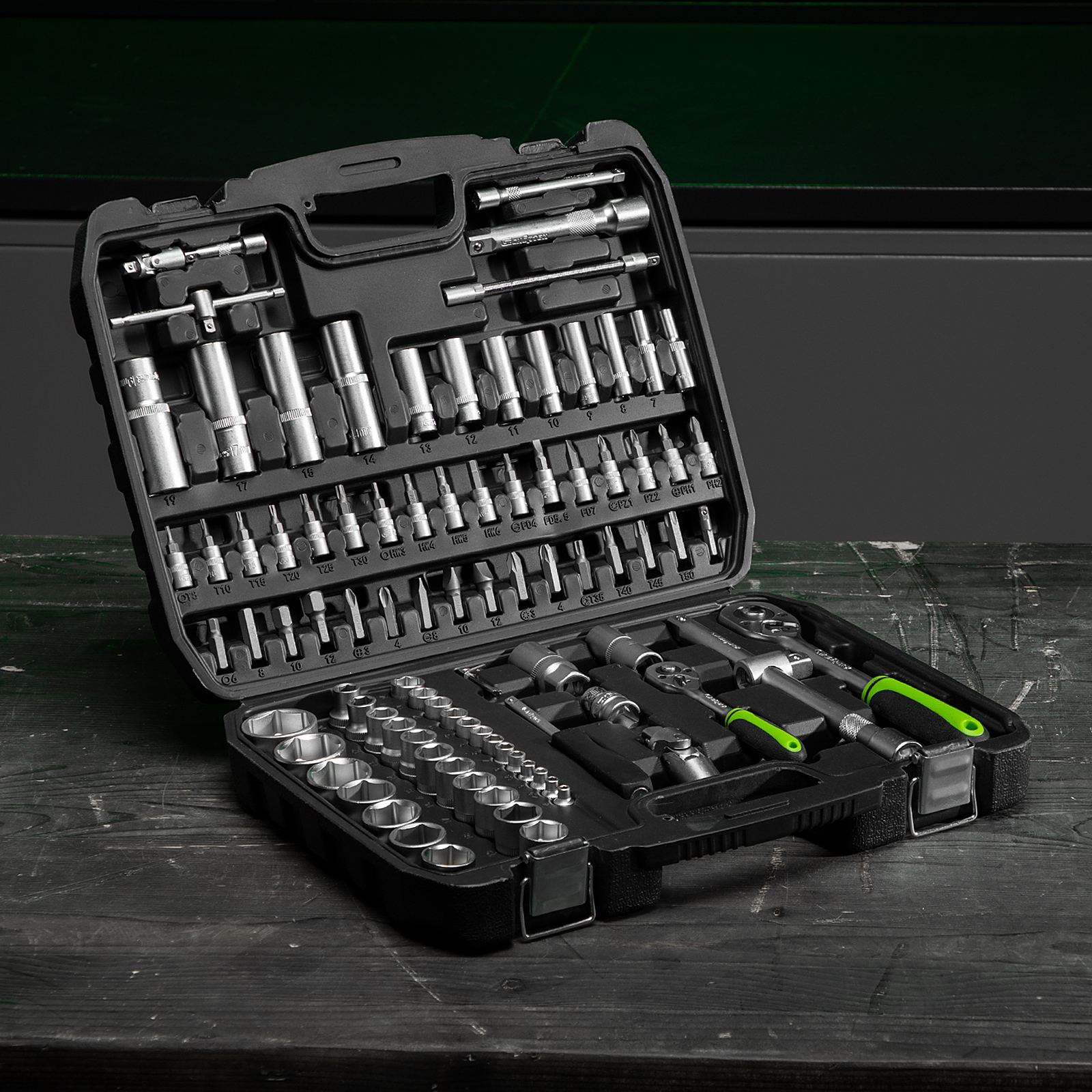 - Продуманное хранение и транспортировка — набор упакован в кейс из ударопрочного пластика, закрывающийся на металлические застежки.