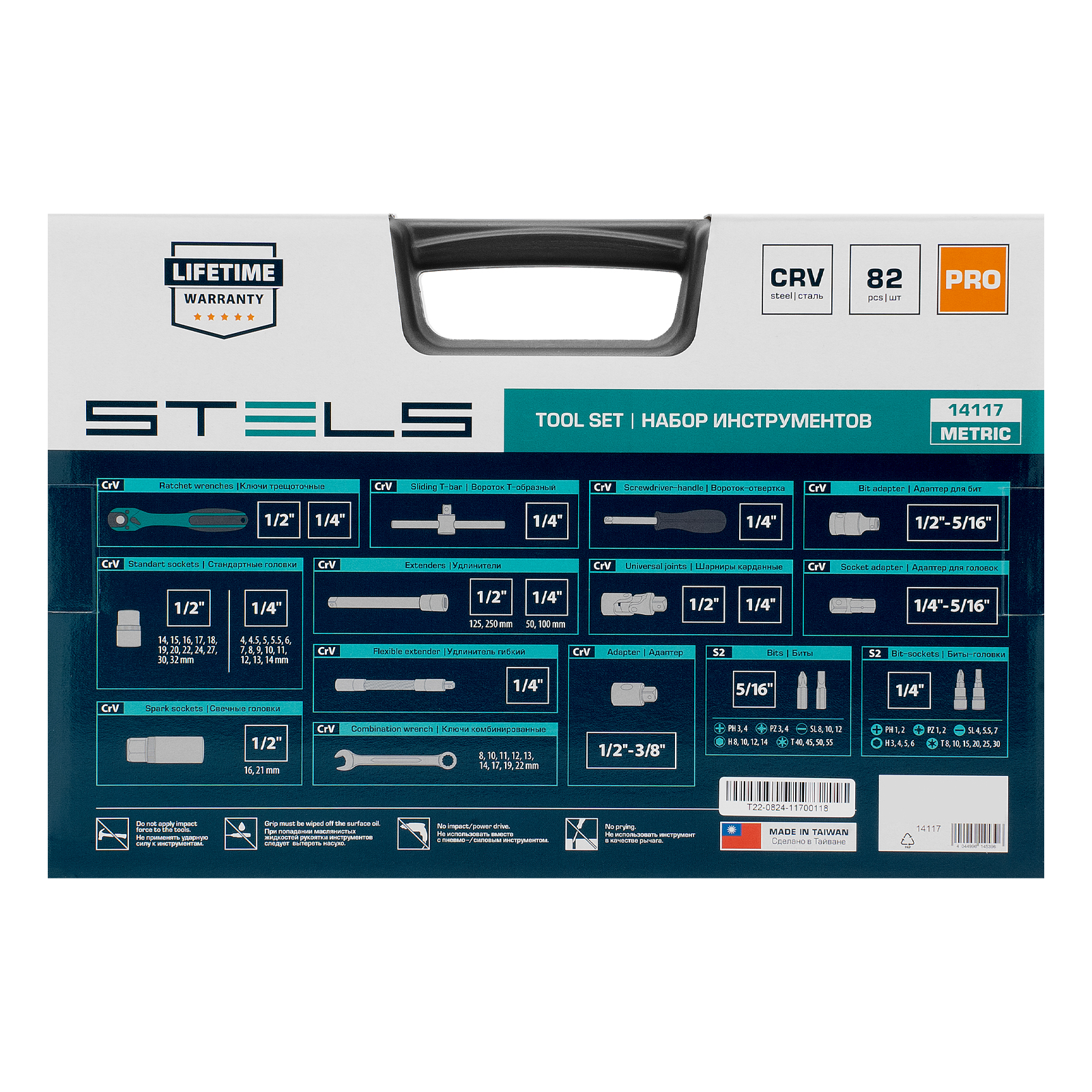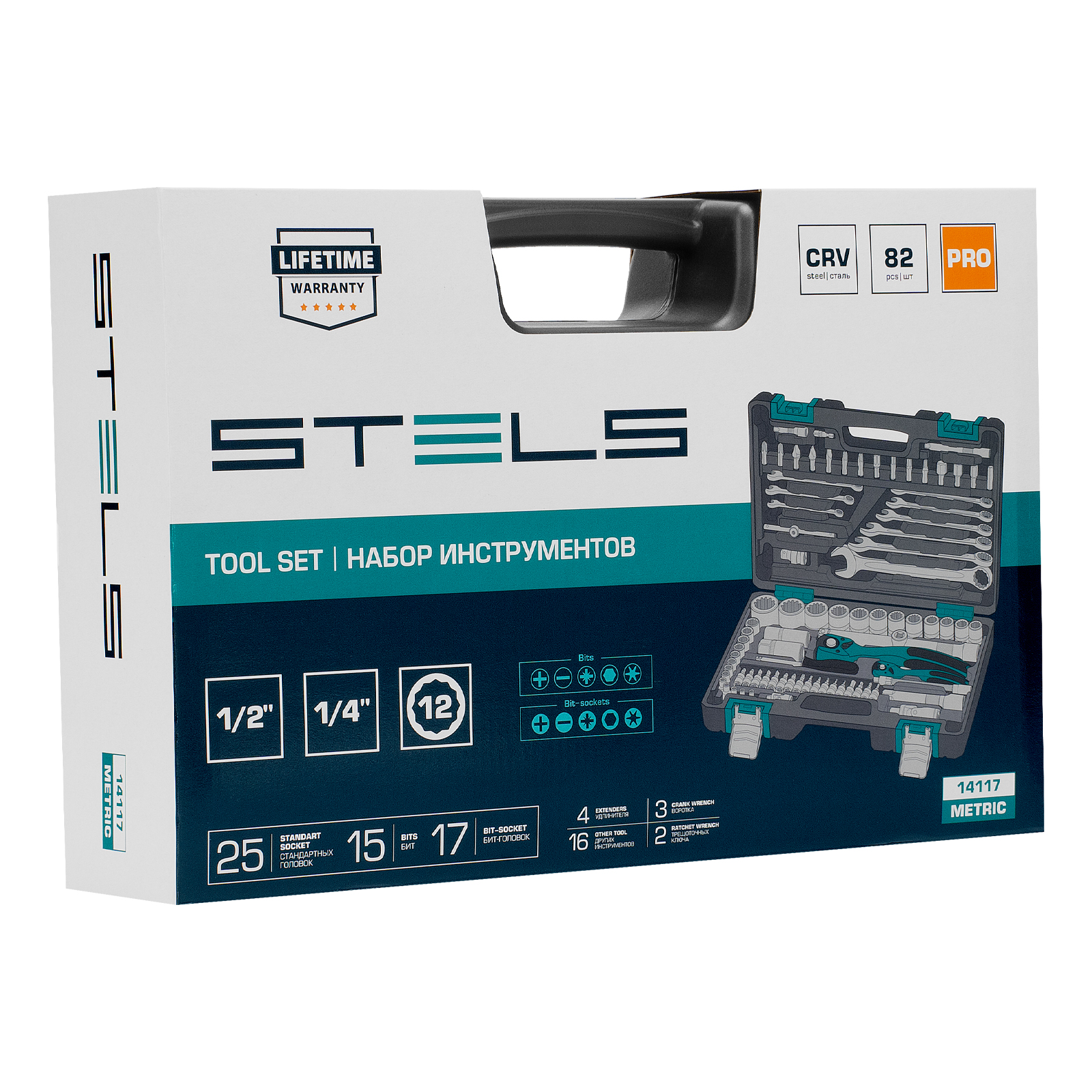 Набор инструментов 1/2", 1/4", CrV, 12 гранные головки, пластиковый кейс, 82 предмета Stels в Екатеринбурге