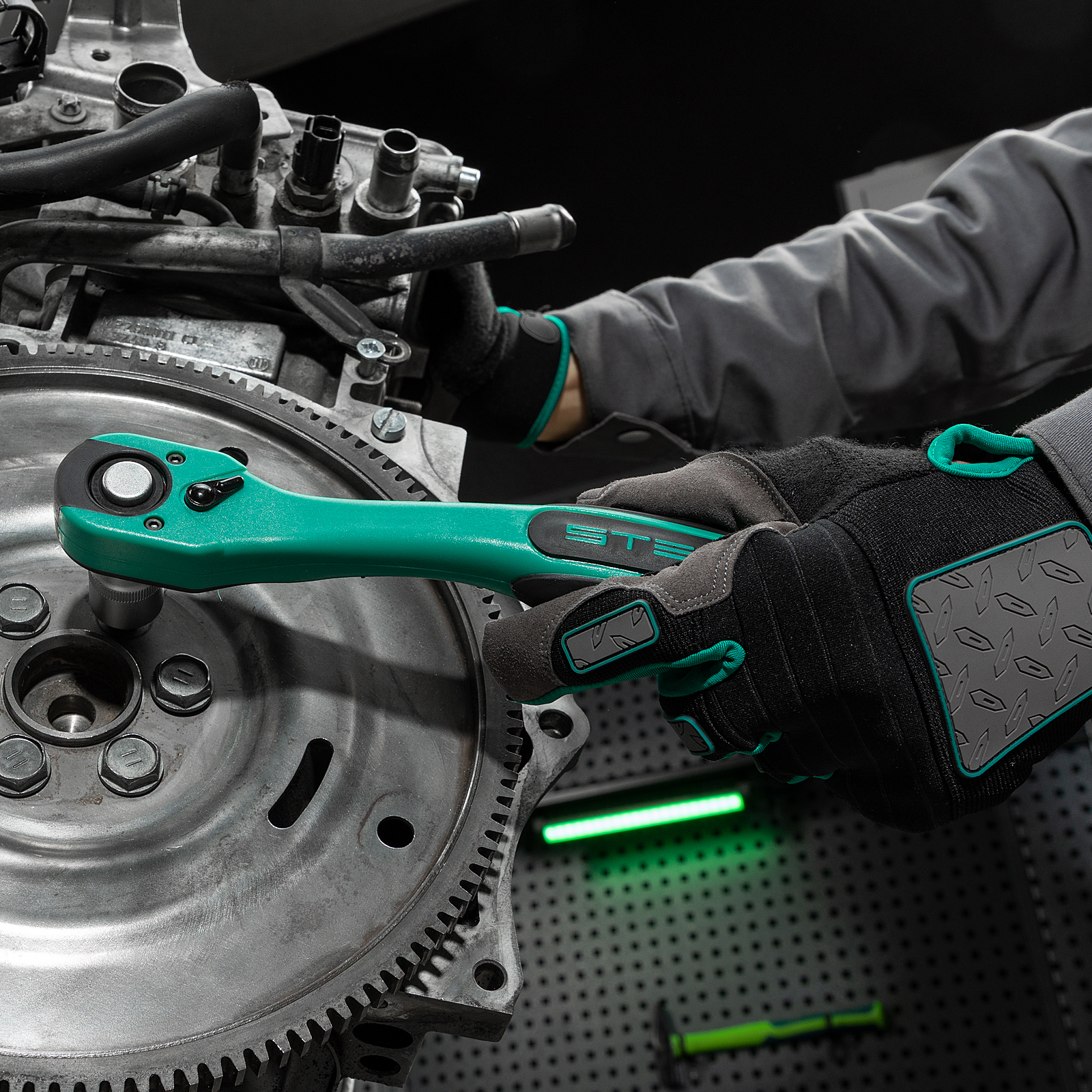 - Комфортная работа в труднодоступных местах — в набор входят ключи-трещотки с 72 зубьями, рабочий шаг составляет всего 5°.