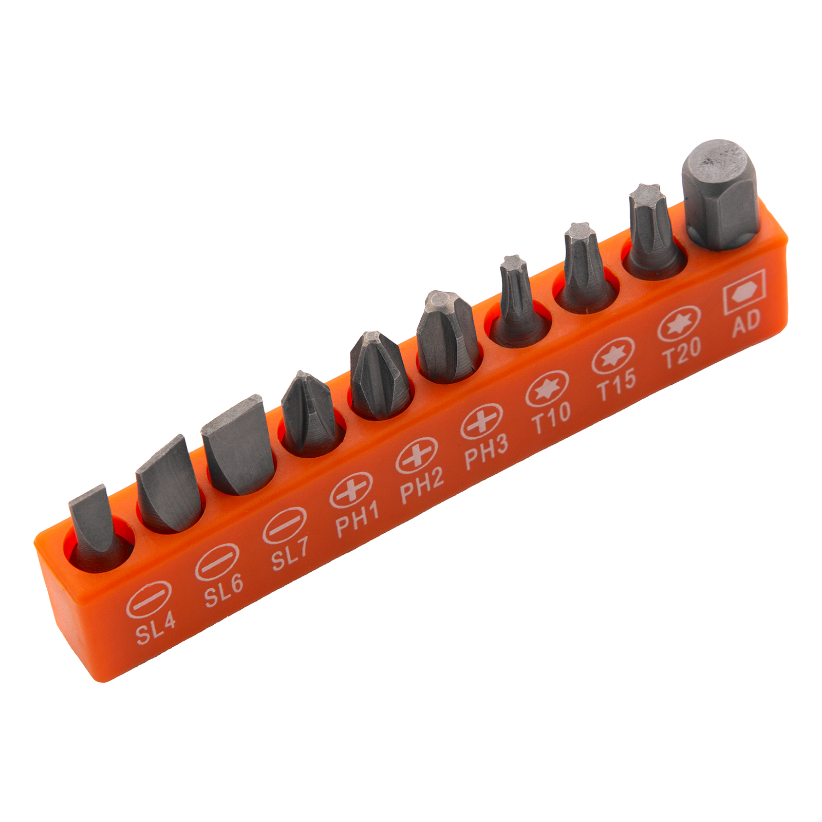 - Универсальность — в комплект входят биты и головки наиболее распространенных размеров.