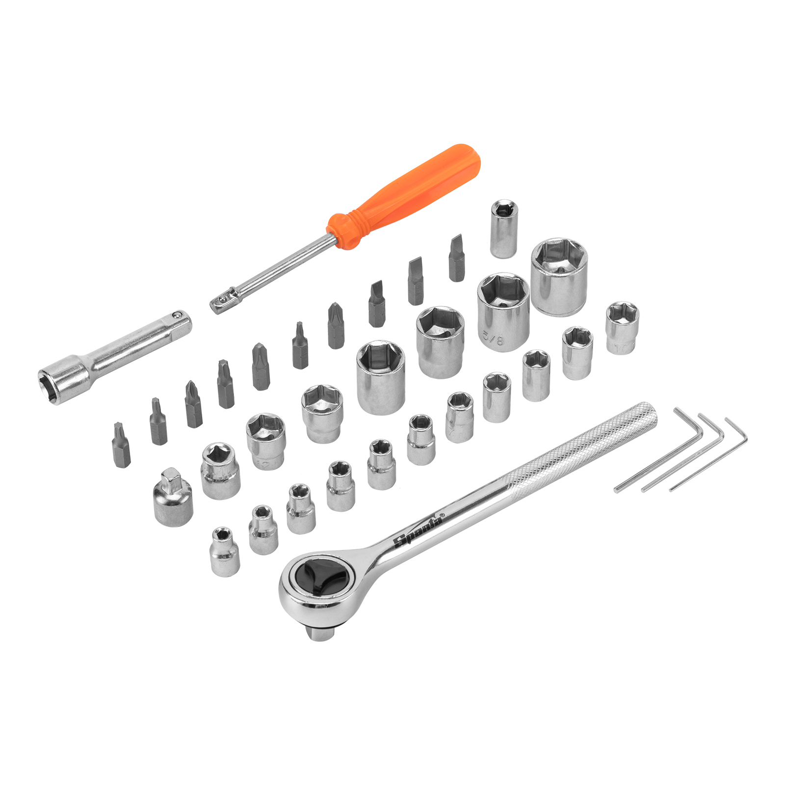 Набор инструментов, 1/2", 1/4", CrV, S2, пластиковый кейс, 109 предметов Denzel