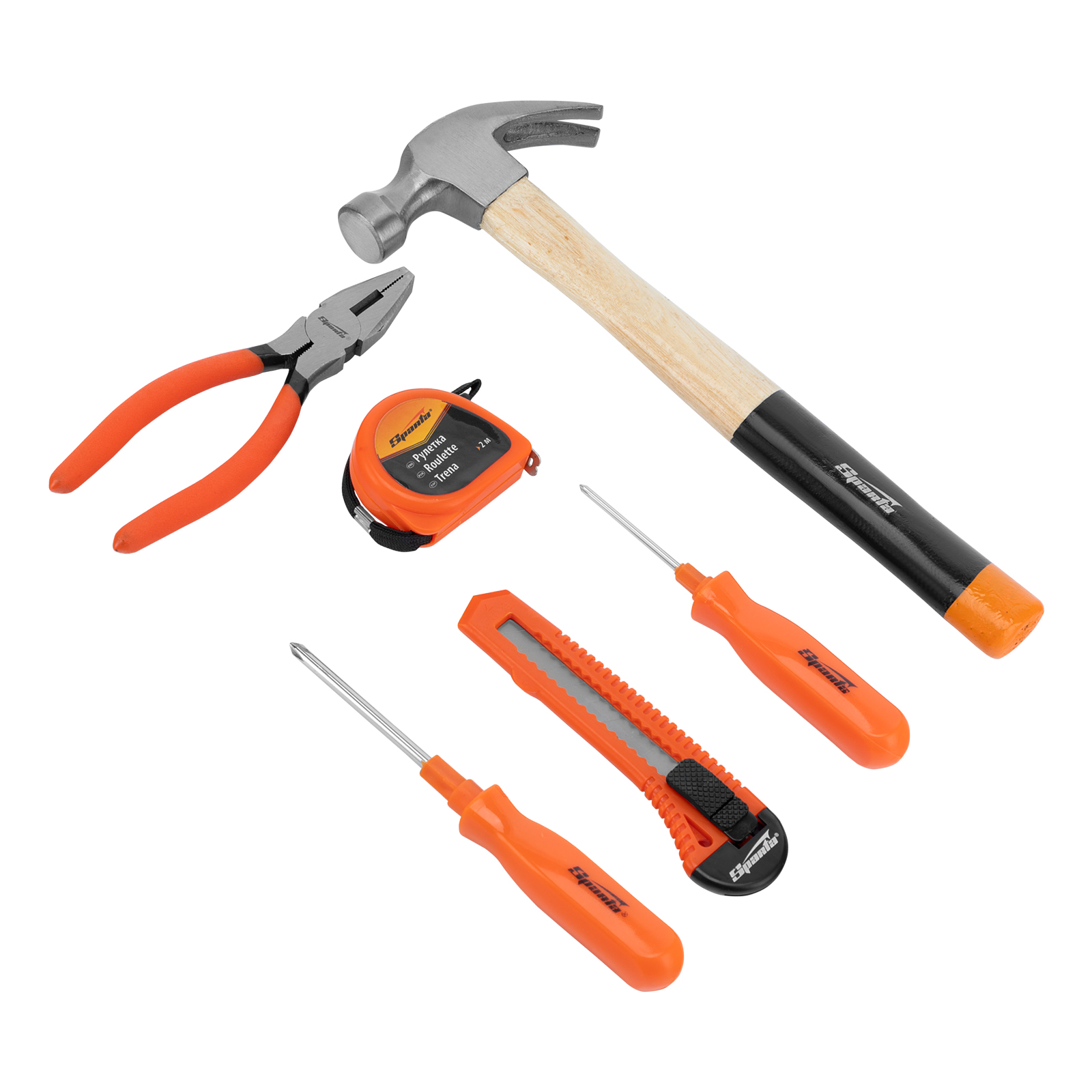 Набор инструмента Sparta 13540 состоит из 6 предметов, которые пригодятся в хозяйстве. Он включает все необходимое для проведения несложных монтажных и ремонтных работ, поэтому будет полезен даже начинающим мастерам. Входящий в комплект нож с выдвижным сегментированным лезвием шириной 18 мм позволяет резать бумагу, картон, раскраивать обои и линолеум.