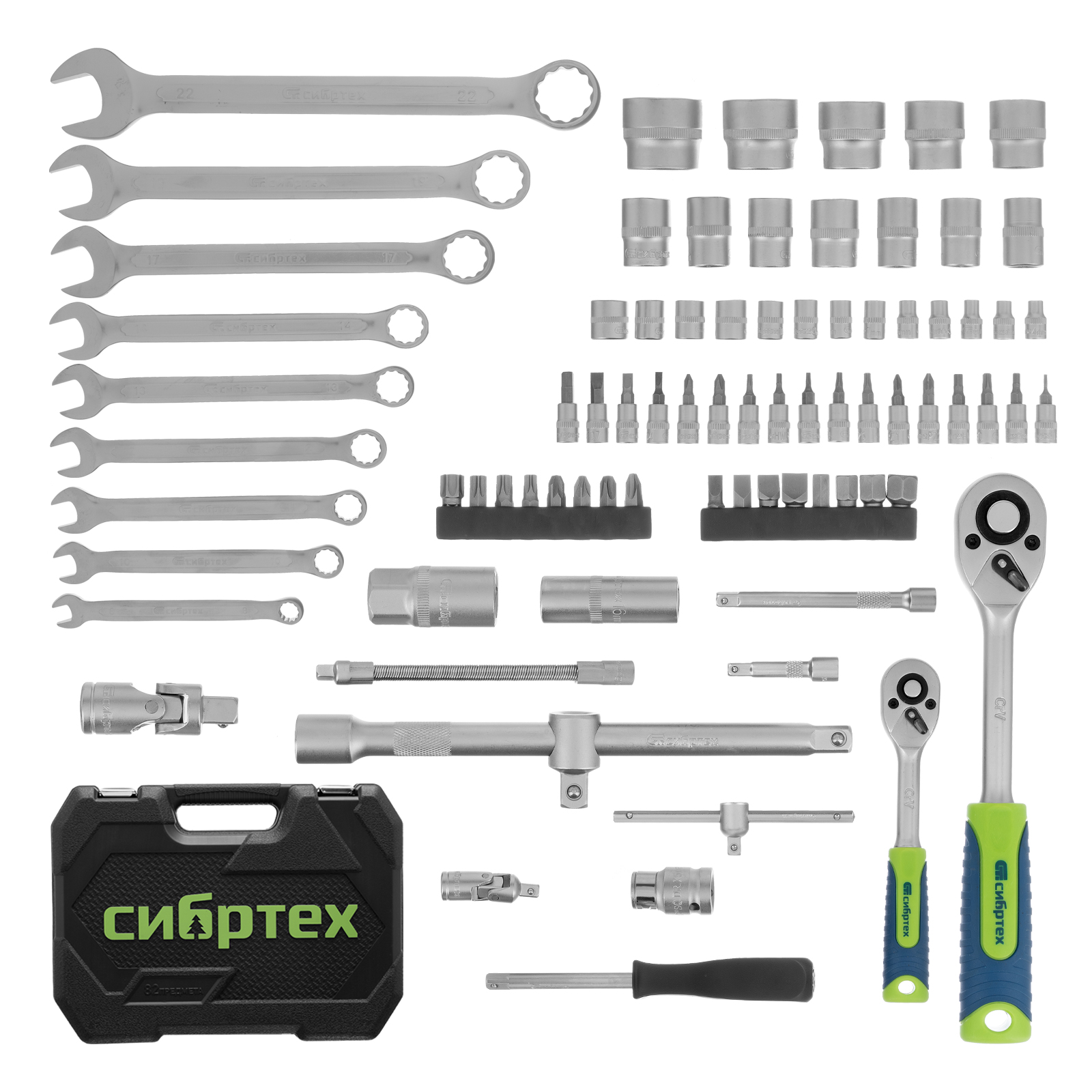Набор инструментов, 1/2", 1/4", пластиковый кейс, 82 предмета Сибртех в Екатеринбурге
