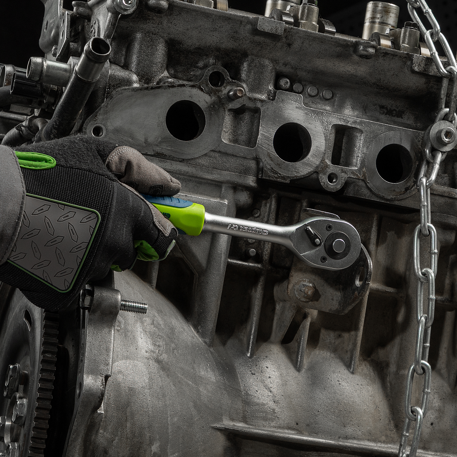 - Эргономичность — двухкомпонентные рукоятки трещоточных ключей удобно ложатся в руку.
