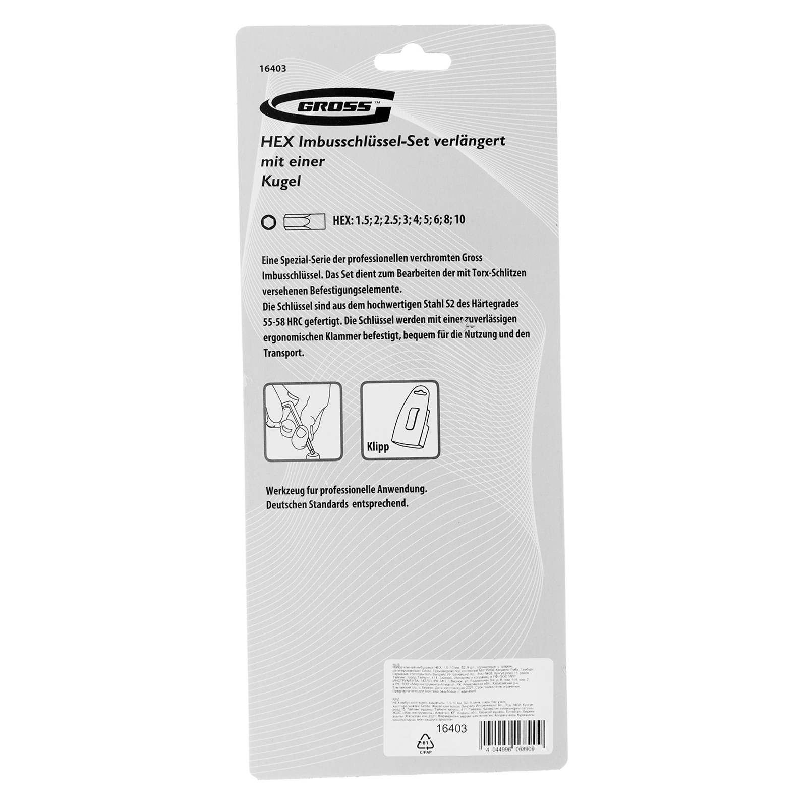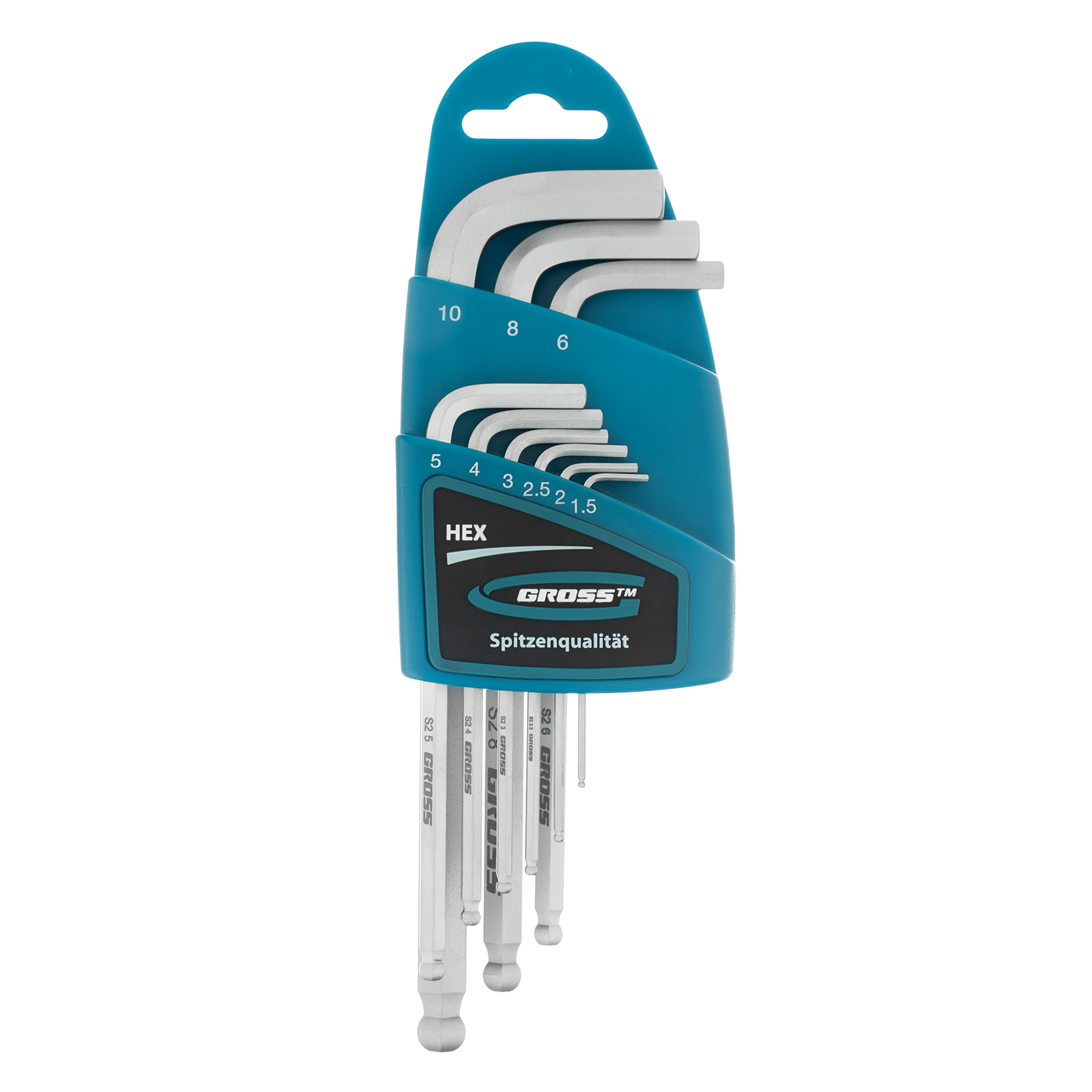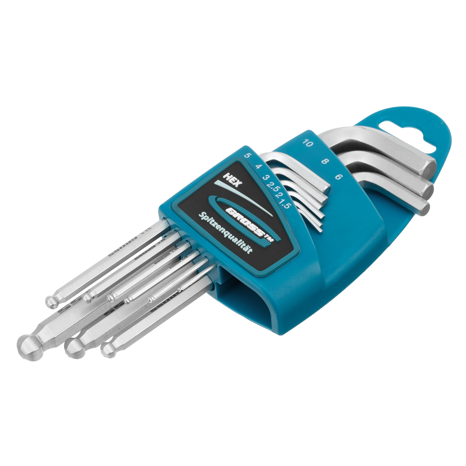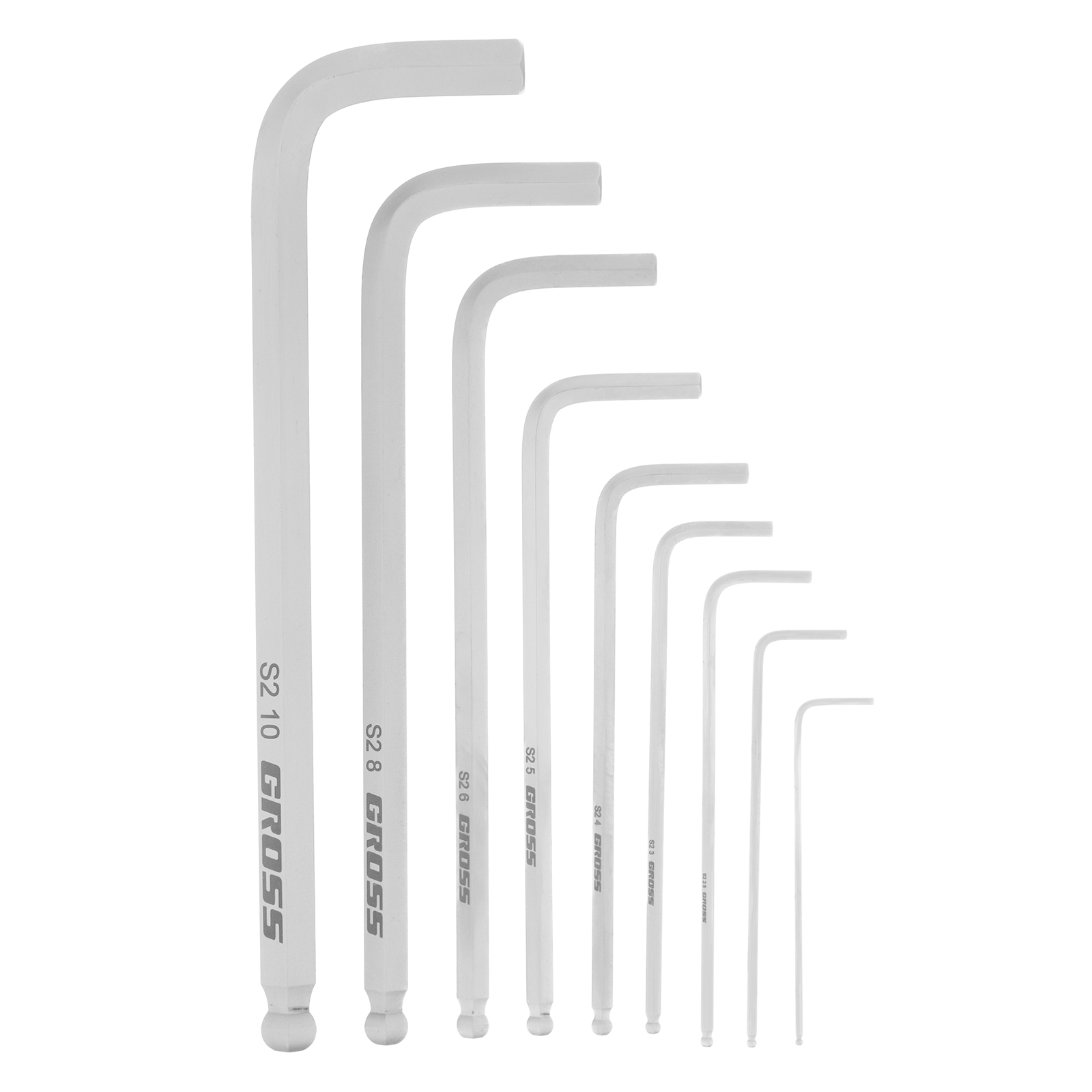 Набор ключей имбусовых HEX, 1.5-10 мм, S2, 9 шт, удлиненные с шаром, сатинированные Gross в Екатеринбурге