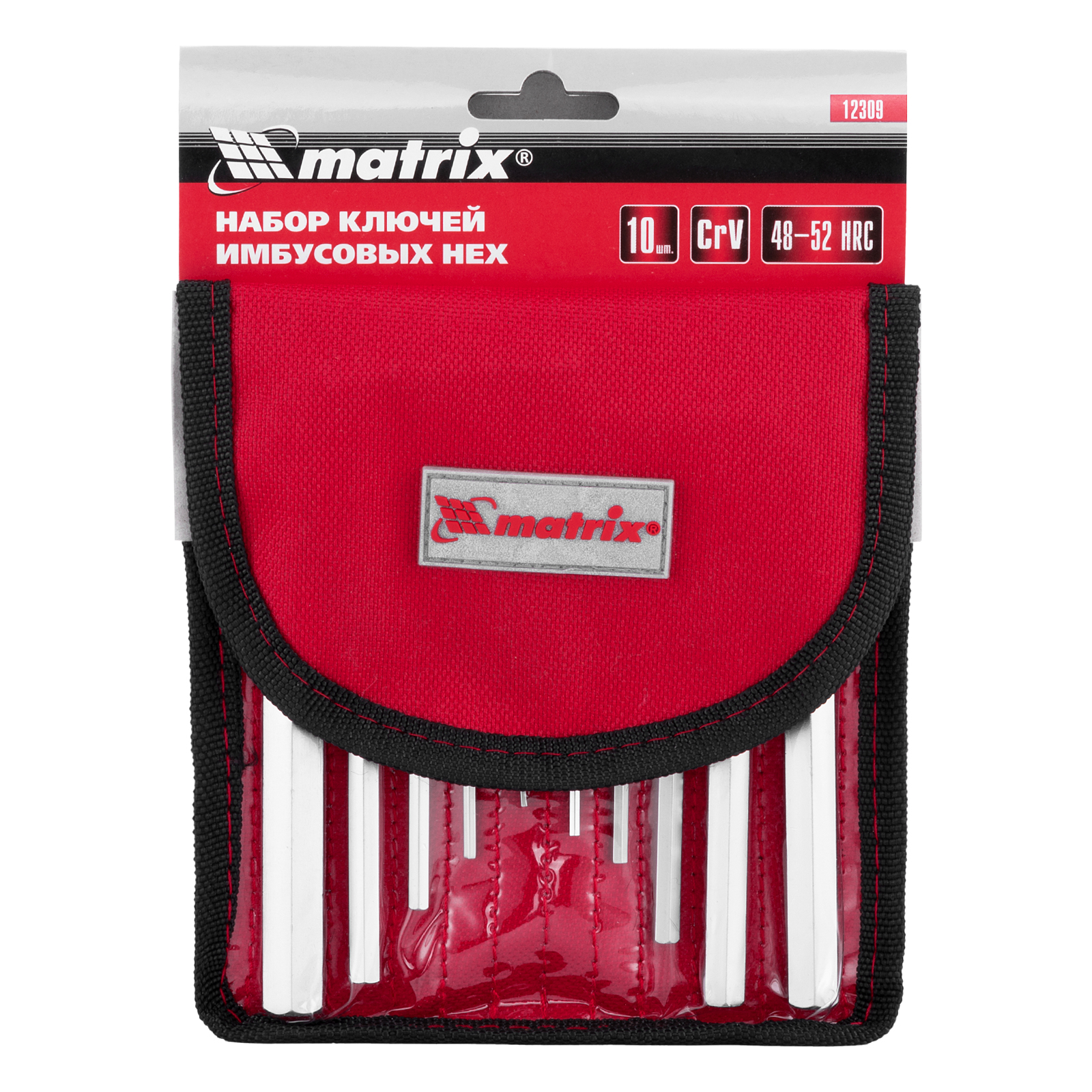 Набор ключей имбусовых HEX, 1.5-12 мм, CrV, 10 шт, короткие, сатин, чехол Matrix в Екатеринбурге