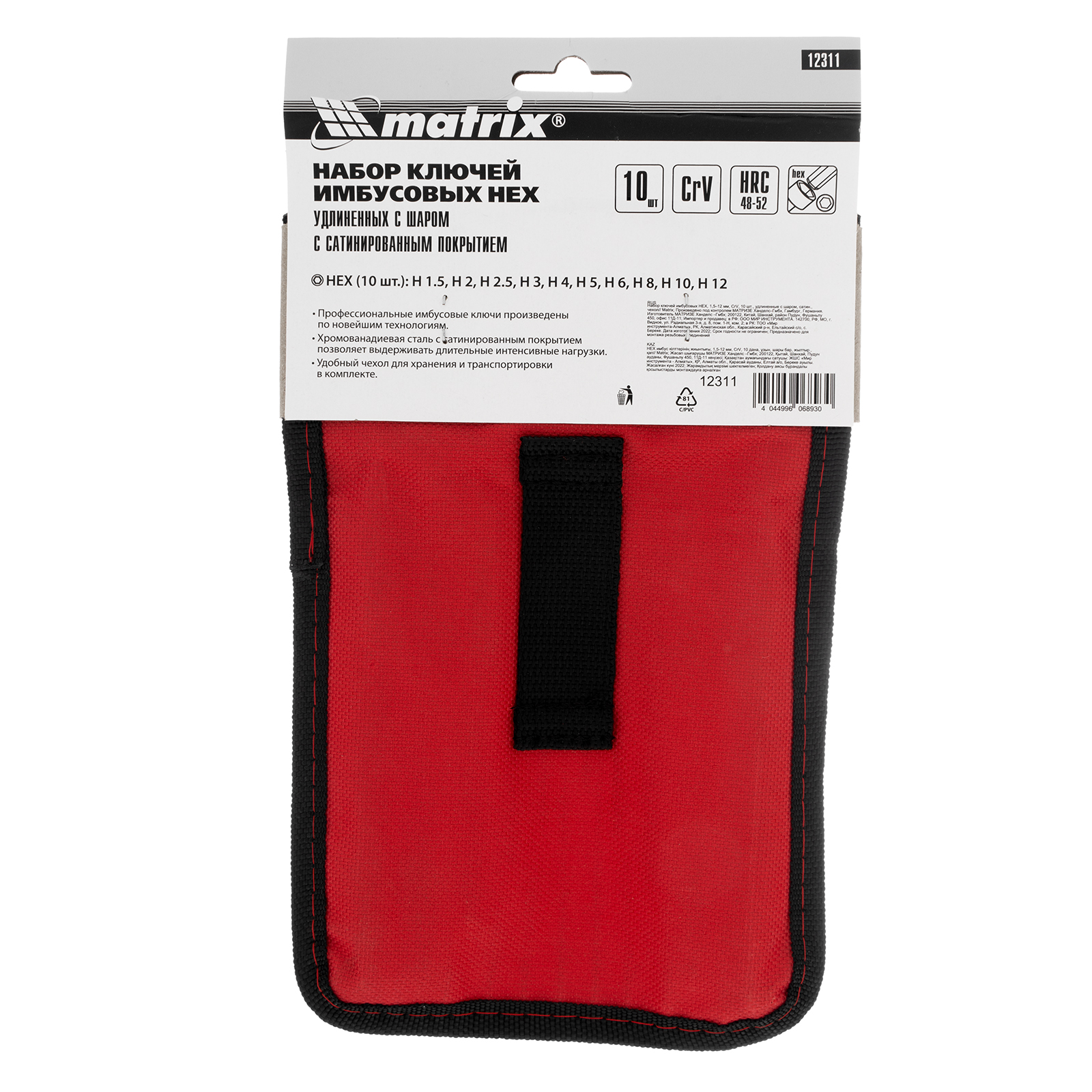 Набор Matrix 12311 в чехле, включающий 10 удлиненных имбусовых сатинированных ключей HEX с шаром, из стали CrV, размером 1,5-12 мм, пригодится как начинающему мастеру, так и профессионалу. Ключи применяются при работе с крепежом, имеющим внутренний шестигранник. С их помощью можно собрать мебель или решить мелкие бытовые задачи. Шарообразные наконечники позволяют работать под углом, что удобно в условиях ограниченного пространства.