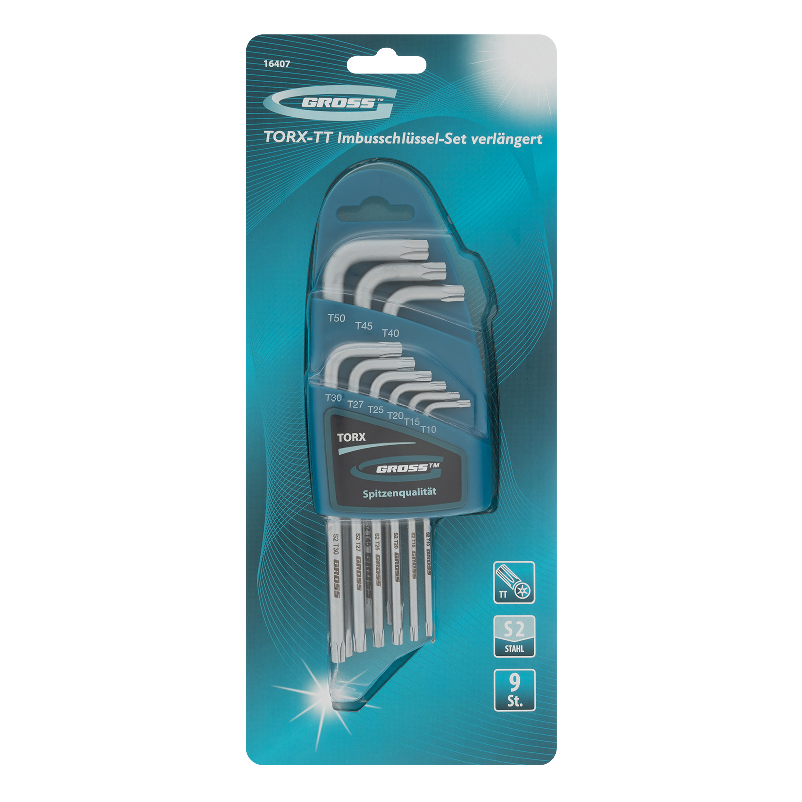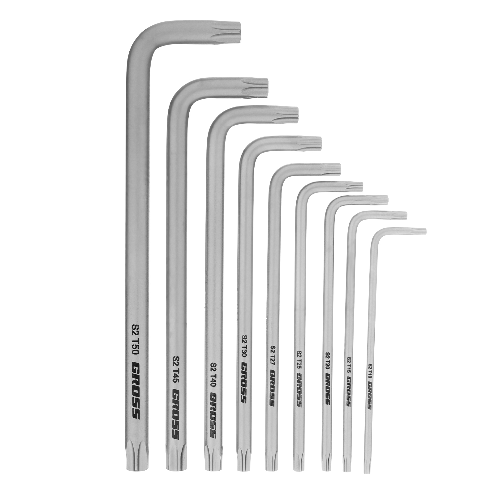 Набор ключей имбусовых Torx -TT, 9 шт: T10-T50, удлиненные, S2, сатинированные Gross в Екатеринбурге