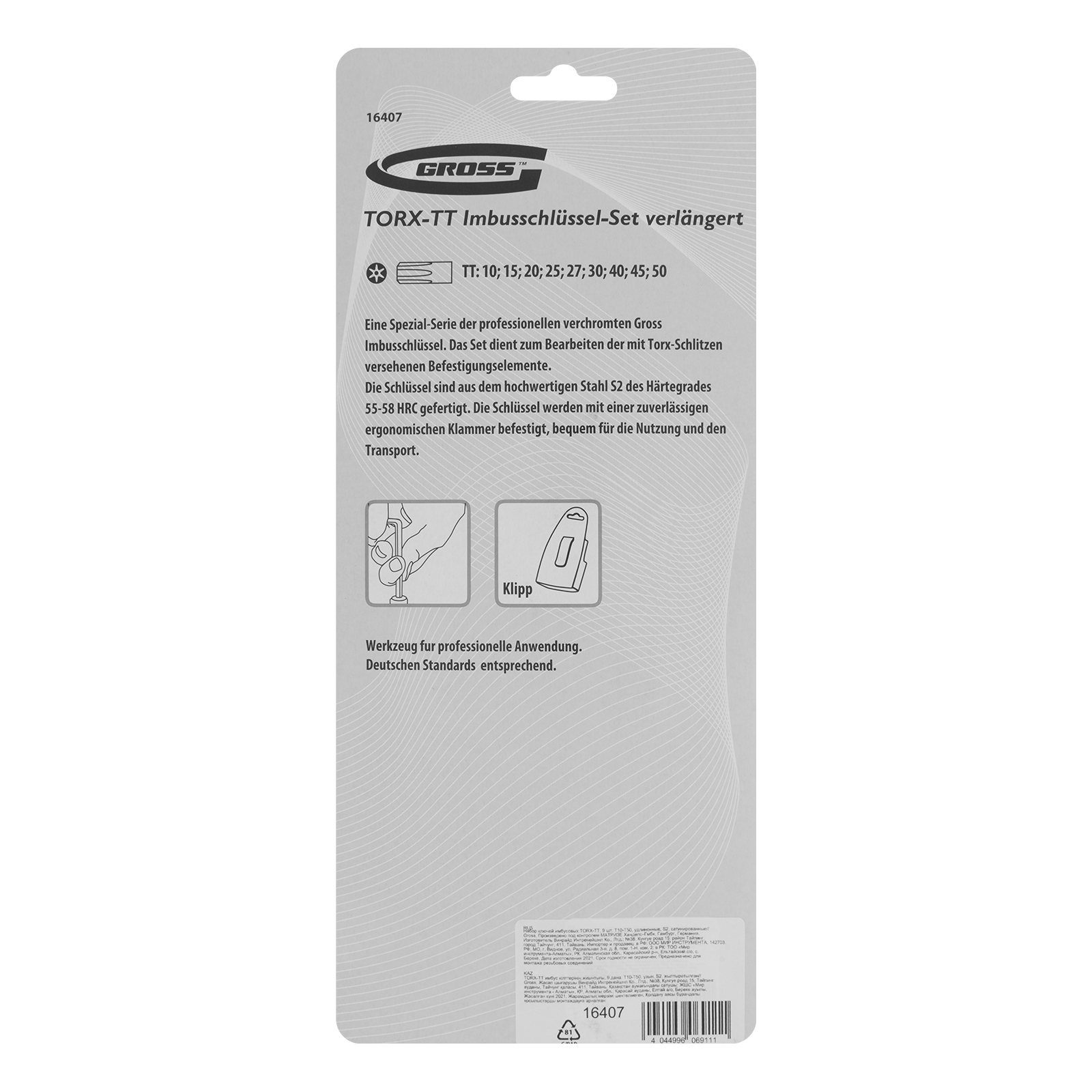 Набор Gross 16407 из стали S2 включает в себя 9 включает в себя 9 удлиненных сатинированных имбусовых ключей для работы с крепежом, имеющим шлицы Torx и Tamper-Torx T10-T50. Благодаря увеличенной длине и Г-образной форме ключи позволяют действовать в труднодоступных местах и экономить усилия при монтаже и демонтаже крепежа. Набор пригодится для ремонта электроприборов.