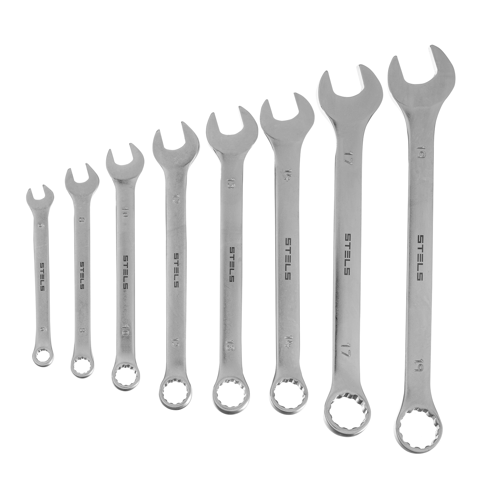 Набор ключей комбинированных 6-19 мм, 8 шт., CrV, матовый хром Stels в Екатеринбурге