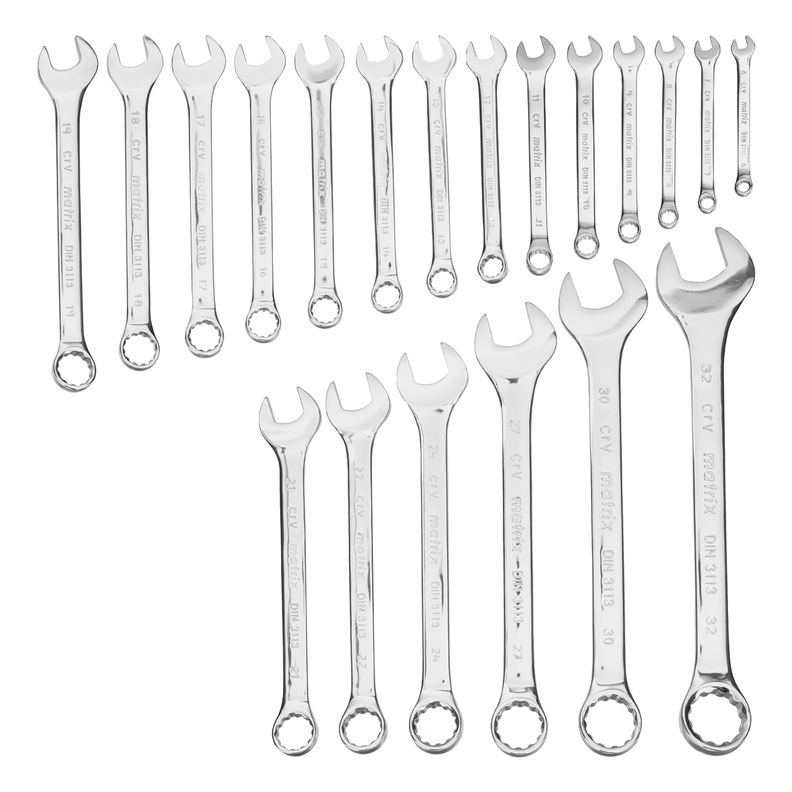Набор ключей комбинированных 6-32 мм, 20 шт, CrV, полированный хром Matrix в Екатеринбурге