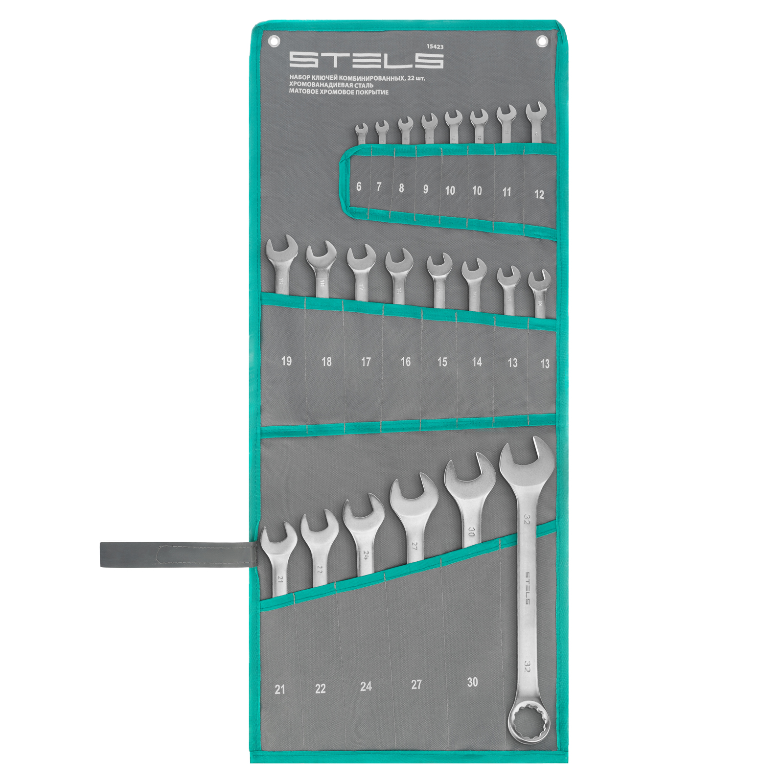 Набор ключей комбинированных 6-32 мм, 22 шт, CrV, матовый хром Stels в Екатеринбурге