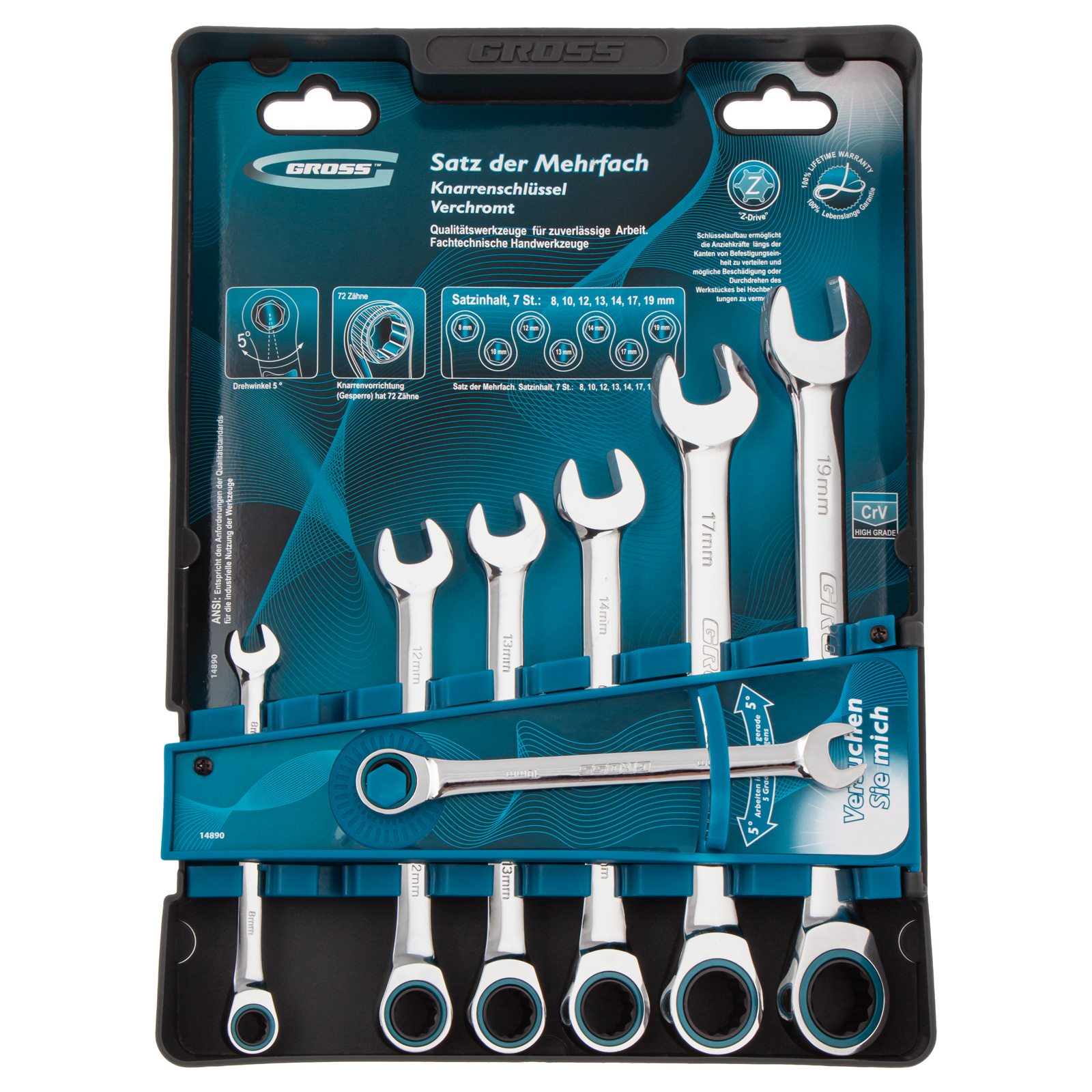 Набор ключей комбинированных с трещоткой, 8-19 мм, 7 шт, CrV Gross в Екатеринбурге
