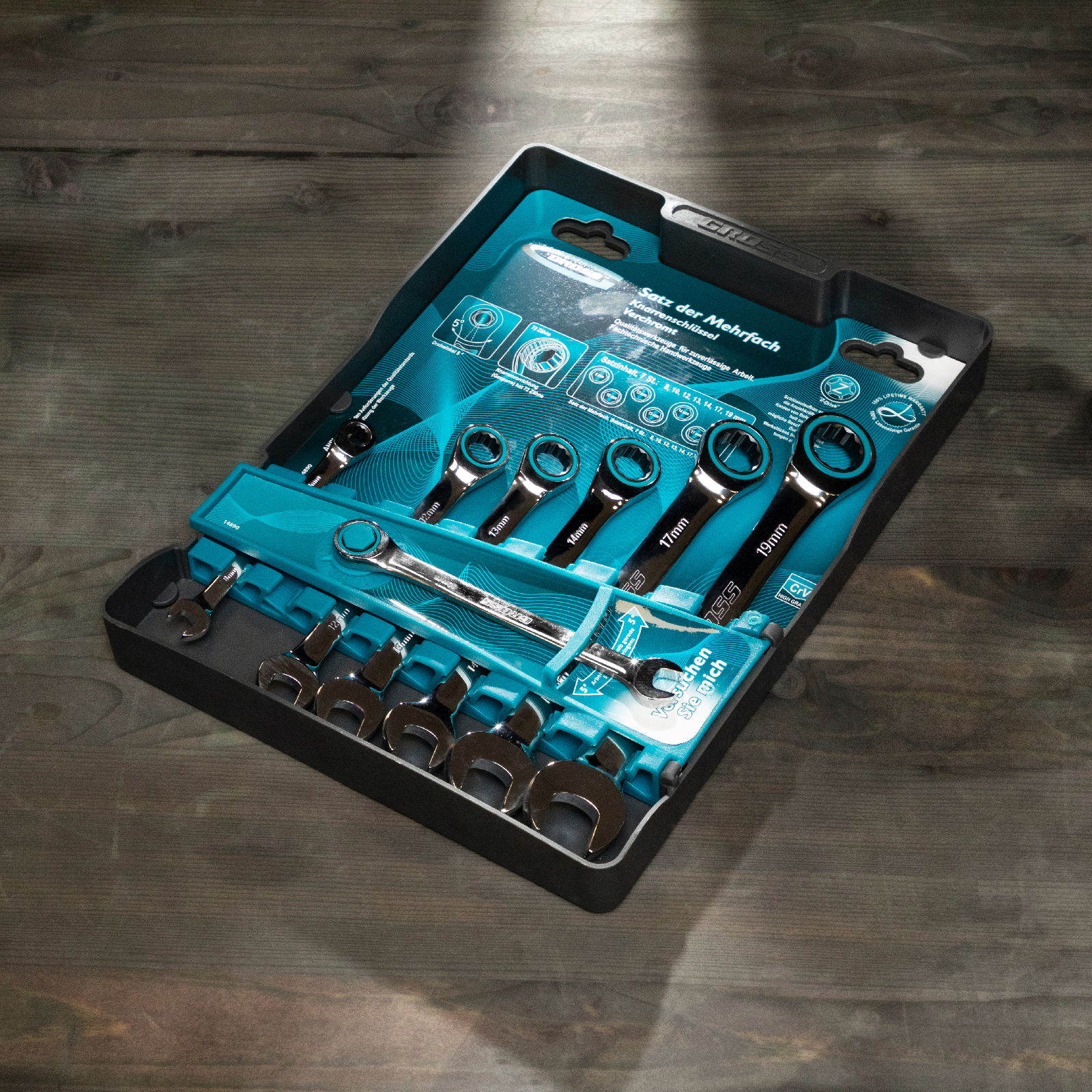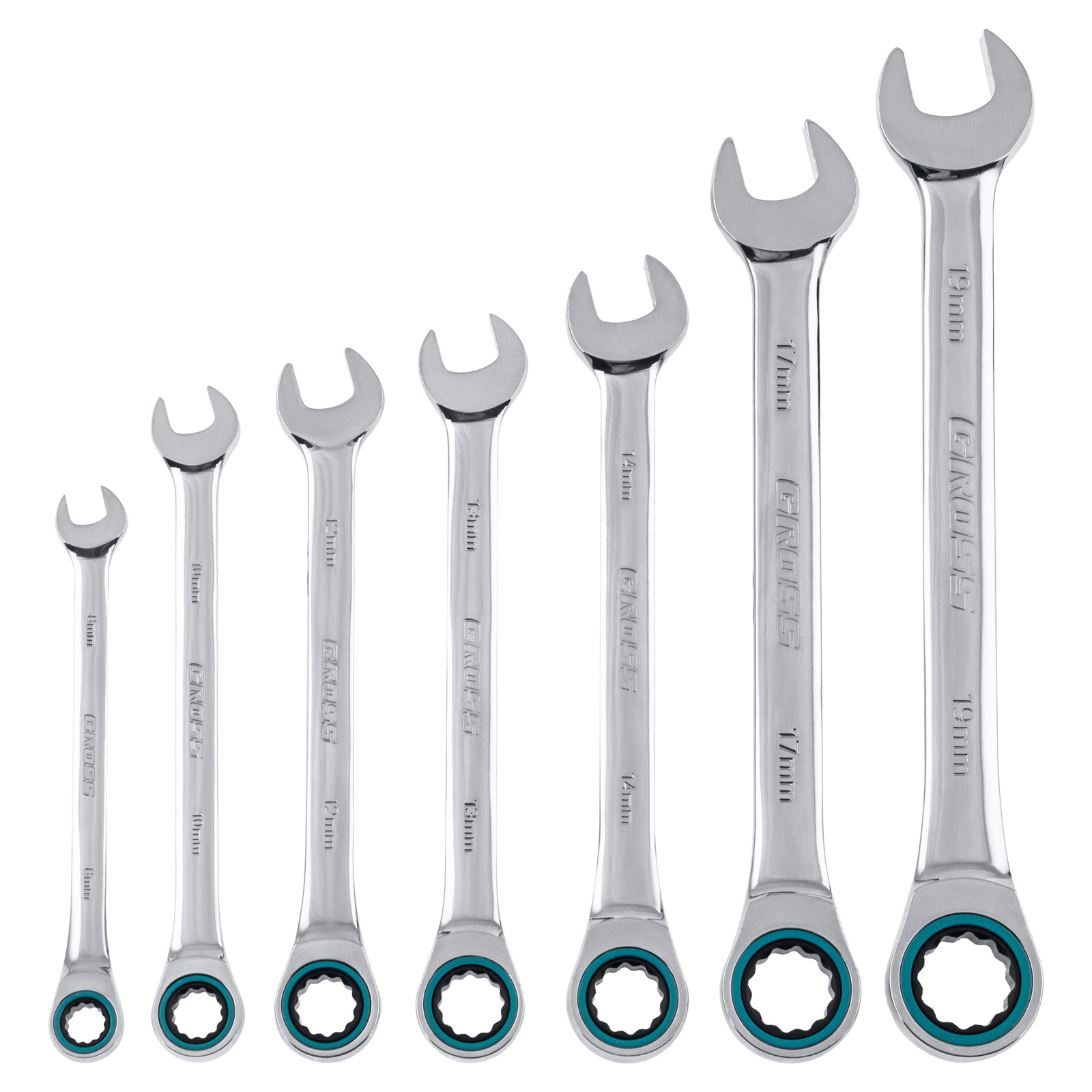 Набор ключей комбинированных с трещоткой - 7 шт, типоразмеры - 8, 10, 12, 13, 14, 17, 19 |