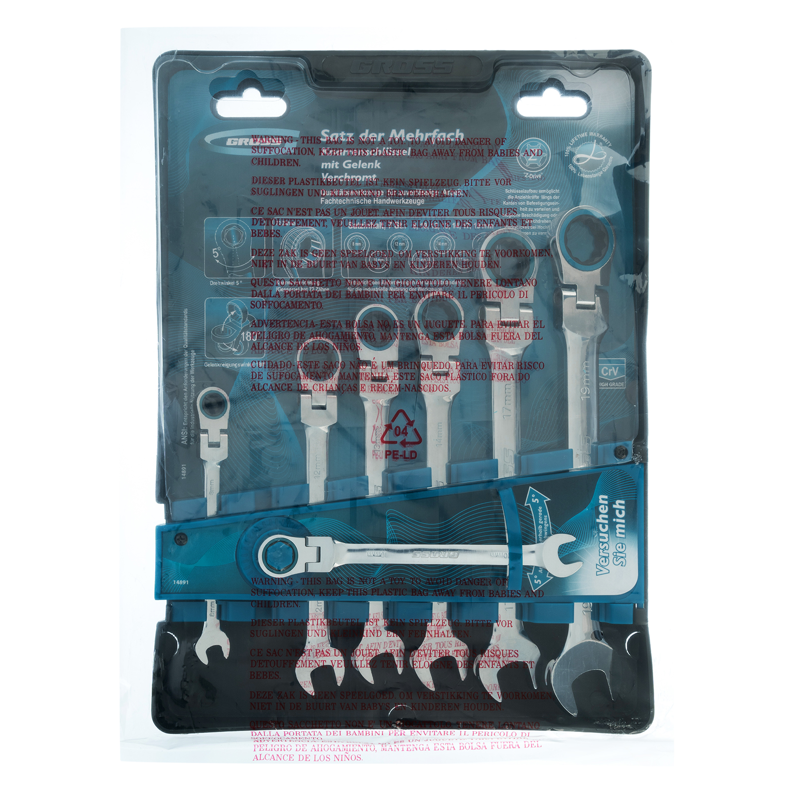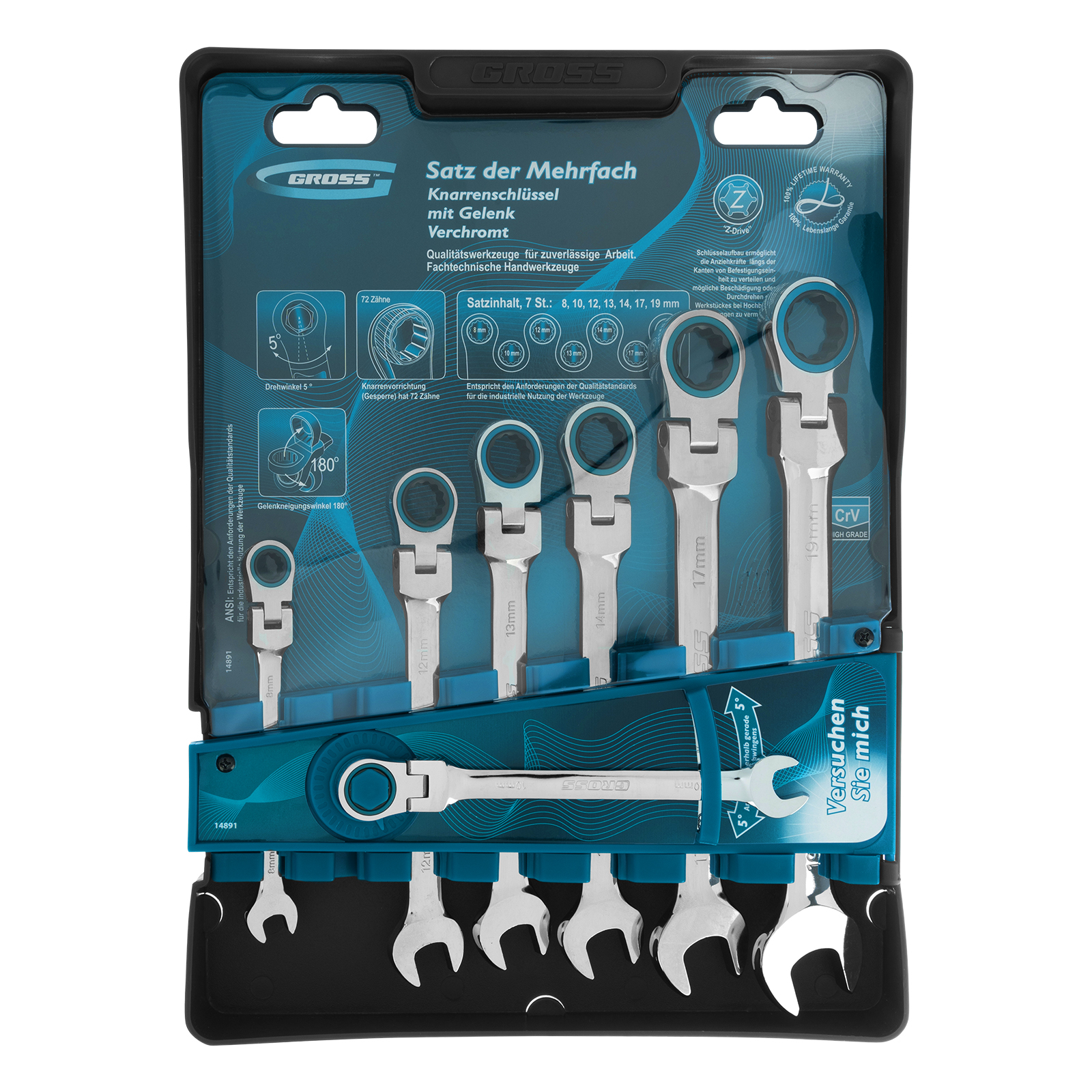 Набор ключей комбинированных с трещоткой, 8-19 мм, 7 шт, шарнирные, CrV Gross в Екатеринбурге