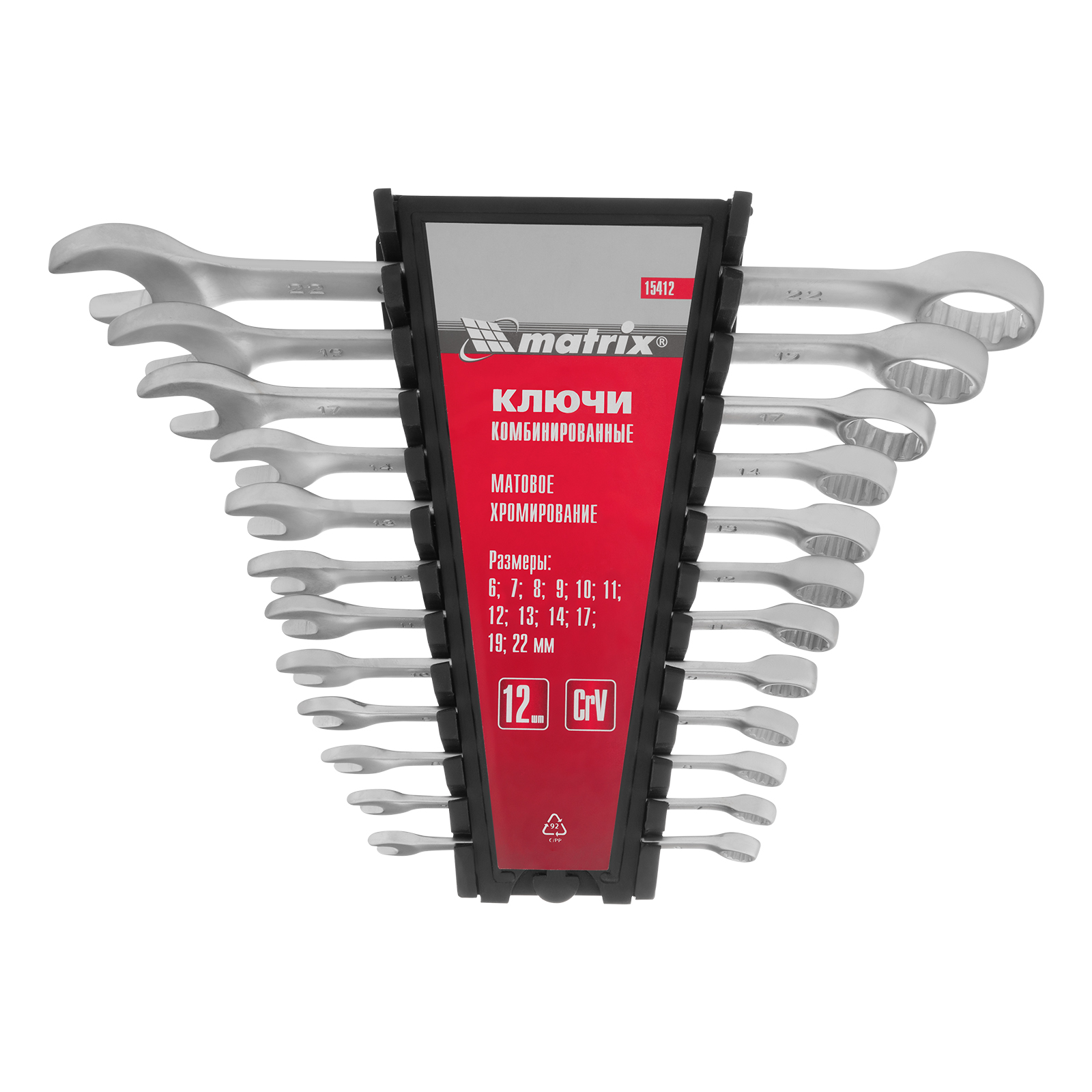 Набор ключей комбинированных, 6-22 мм, 12 шт, CrV, матовый хром Matrix в Екатеринбурге