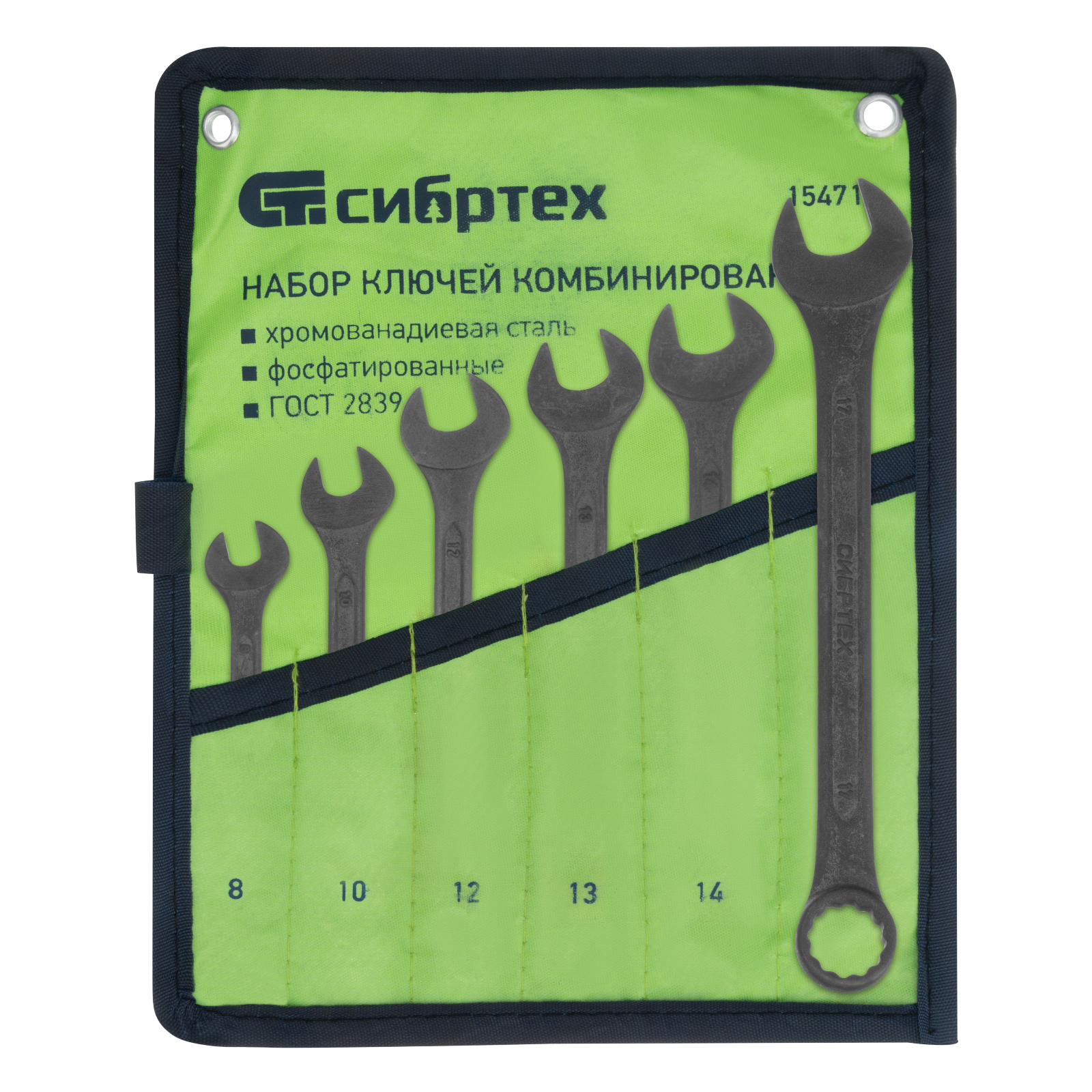 Набор ключей комбинированных, 8 - 17 мм, 6 шт., CrV, фосфатированные Сибртех в Екатеринбурге