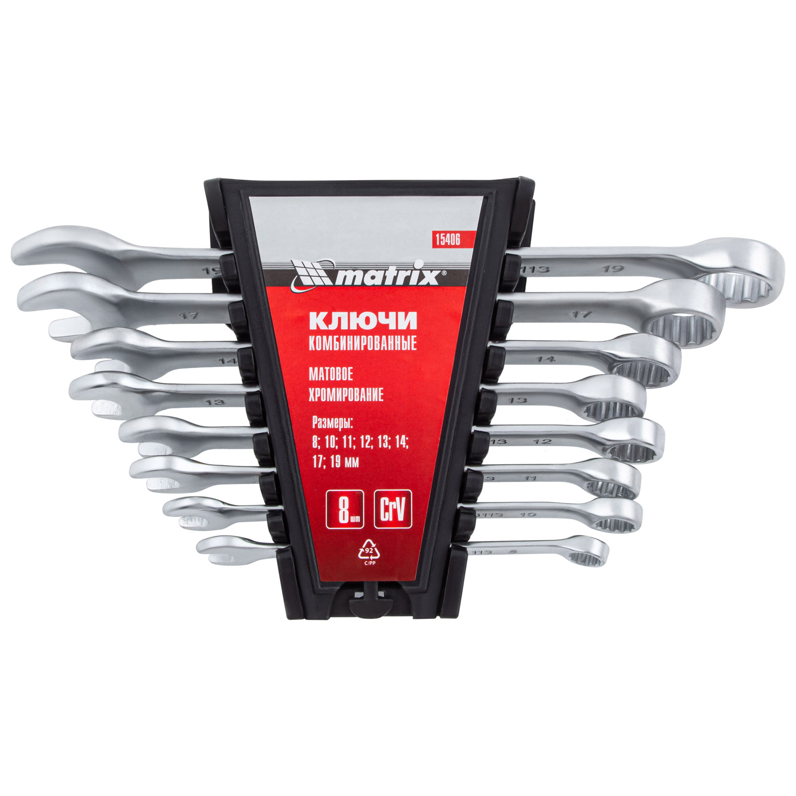 Набор ключей комбинированных, 8-19 мм, 8 шт, CrV, матовый хром Matrix в Екатеринбурге