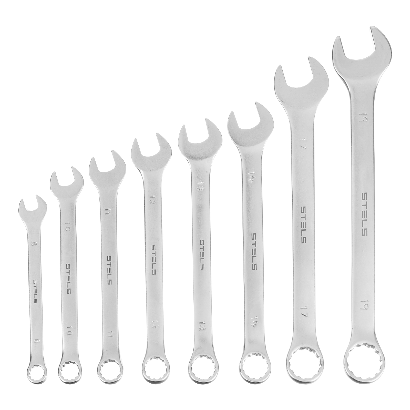 Набор ключей комбинированных, 8-19 мм, 8 шт, CrV, матовый хром Stels в Екатеринбурге